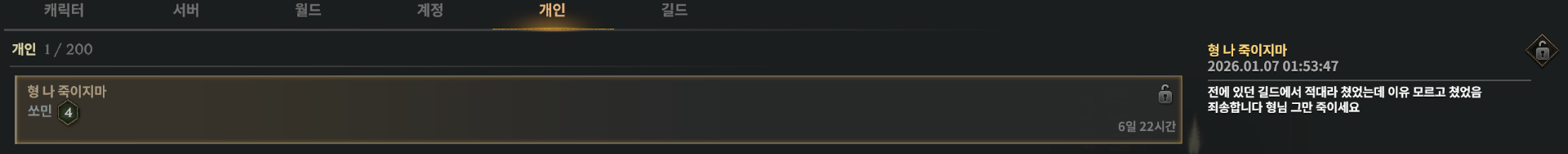 Tips and Strategies's post List [모리안]showme View MY HOME View Posts 작성 시간 09/01/2026 +3 울란4서버 막피 명단 [3] 09/01/2026 09/01/2026 04:43 PM [모리안]showme View MY HOME View Posts 작성 시간 07/01/2026 +3 울란4서버 막피 반코드 신고 하세요 게임 약관에도 나와 잇어요 [4] 07/01/2026 07/01/2026 11:30 AM [모리안]showme View MY HOME View Posts 작성 시간 06/01/2026 +1 울란4서버 막피 캄보디아 부케릭 쏘민 딱2번 죽드만 중재글 ㅋㅋ [1] 06/01/2026 06/01/2026 06:40 PM [모리안]showme View MY HOME View Posts 작성 시간 06/01/2026 울란4서버 막피 캄보디아 부케릭혈맹 흑야 혈맹(지금은 혈맹업어짐) 부케릭명단 [3] 06/01/2026 06/01/2026 07:58 AM [모리안]showme View MY HOME View Posts 작성 시간 06/01/2026 +1 울란 4서버 흑야 길드 똘아이 인가? [1] 06/01/2026 06/01/2026 12:50 AM