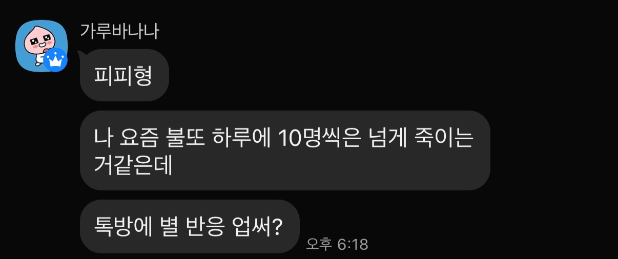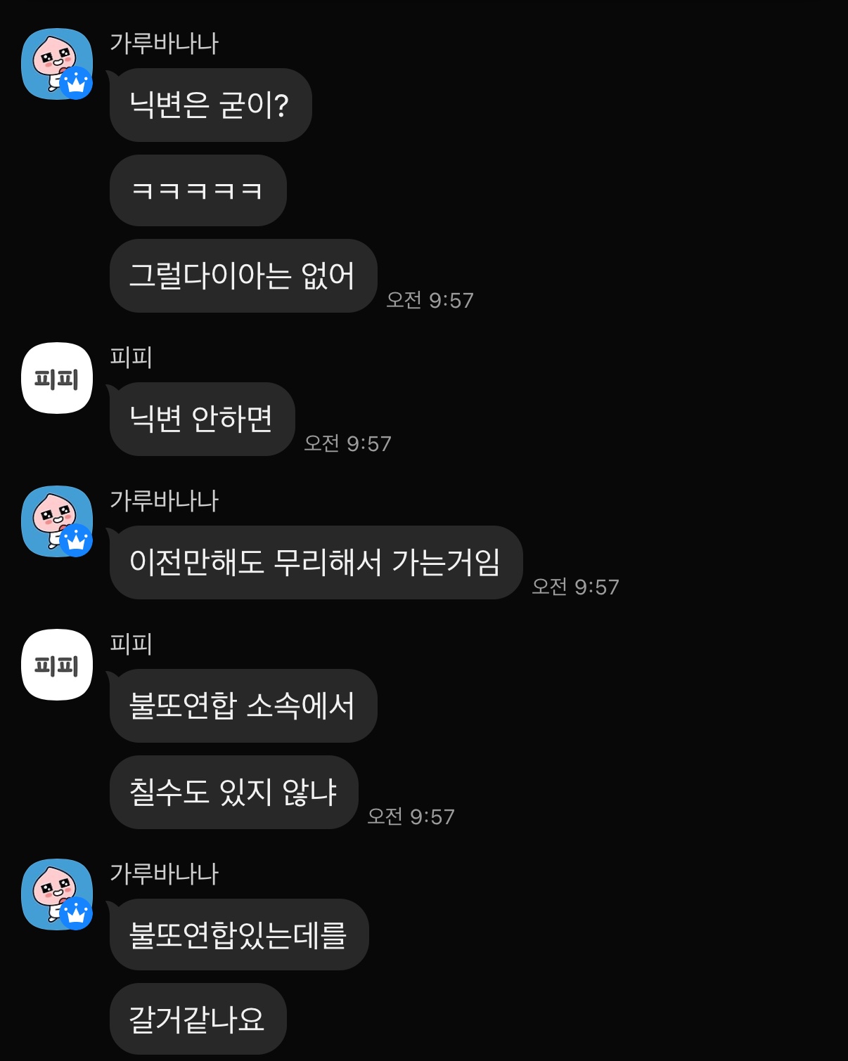 아래는 불또 연합을 욕하던 가루바나나의 채팅