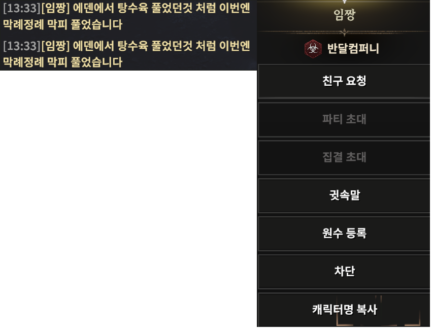 8. 너무 처맞다보다보니 이건 아니다 싶었는지 본인들은 막피 그만둠. 그리고 나보고 에덴에서 보낸 막피범이라고 선동함.