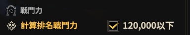 排名統計條件 | 進入角色的戰鬥力符合該區域排名計算範圍時,方會納入排名統計 |