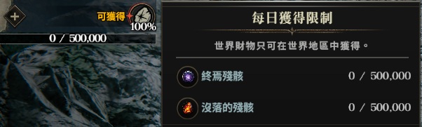 - 終焉殘骸每日獲得限制將於台灣時間23點重置。