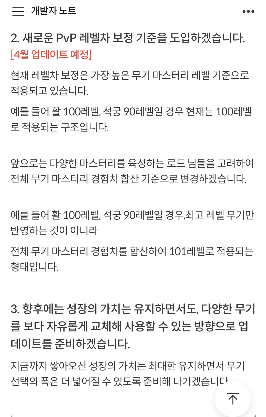 개발자 노트, 업데이트 게시판 좀 읽어 형..