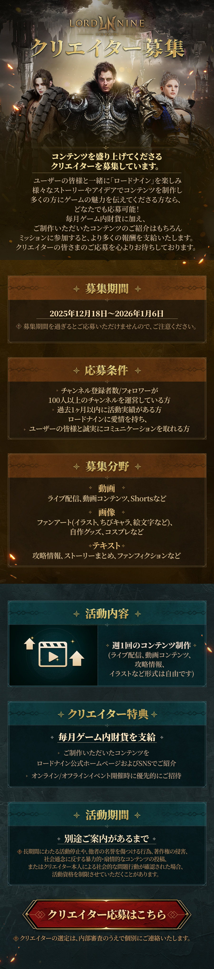 글상세お知らせ [お知らせ] 「ロードナイン」クリエイター募集のご案内 OFFICIAL ロードナイン運営 2025-12-18 09:40 2025-12-18 18:40 (+09:00) view count 303 MYホームを見る 作成した投稿/コメントを表示 シェアする . 確認 キャンセル 確認