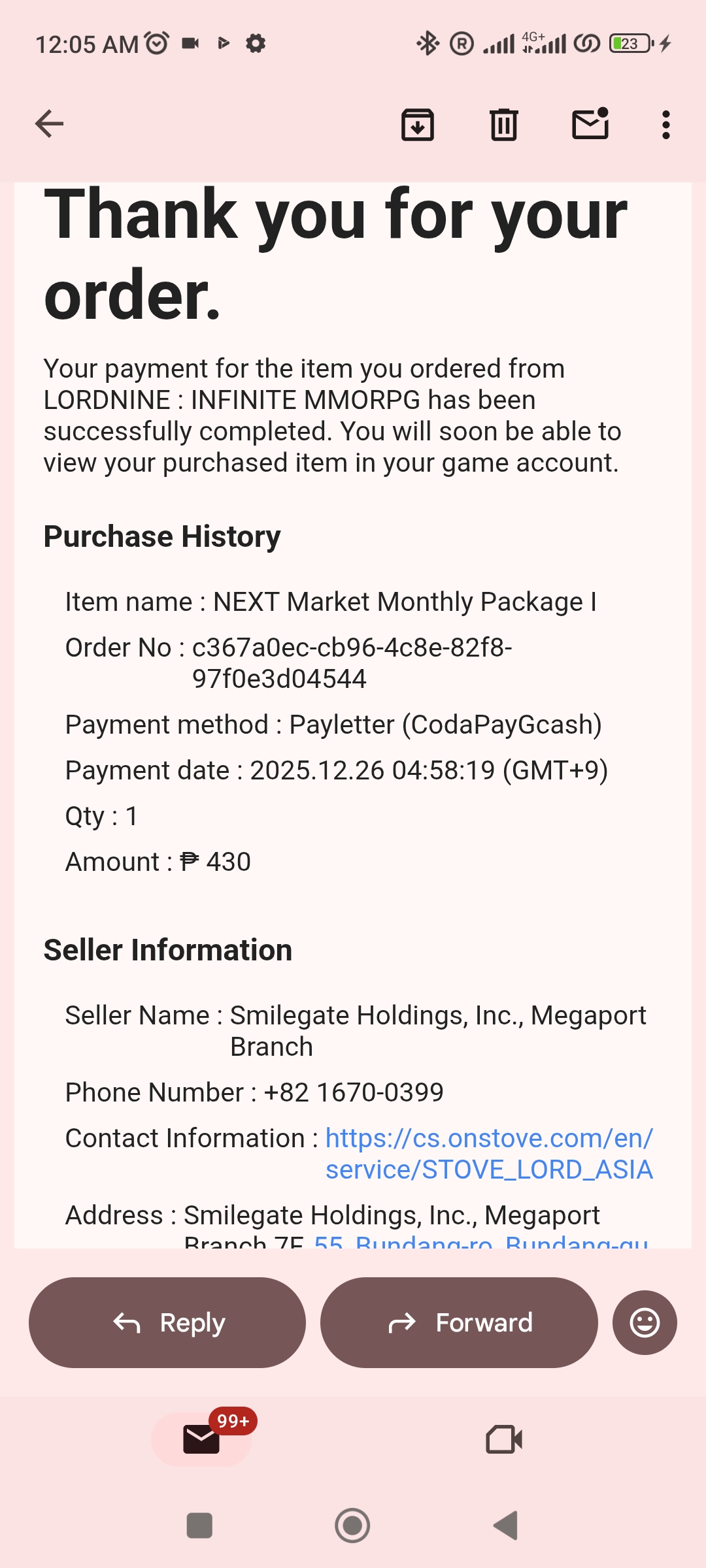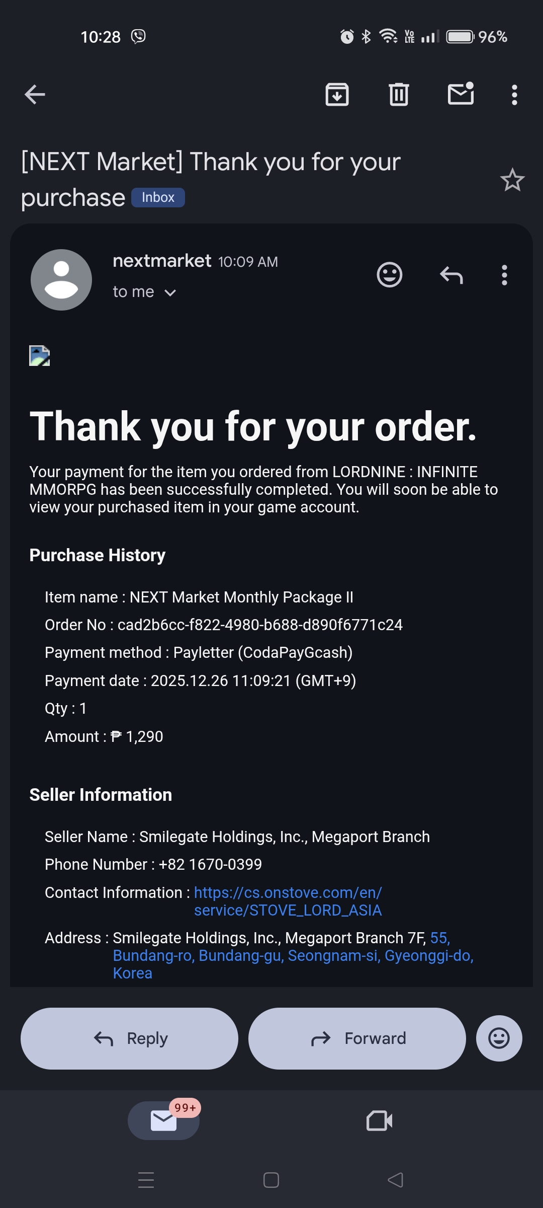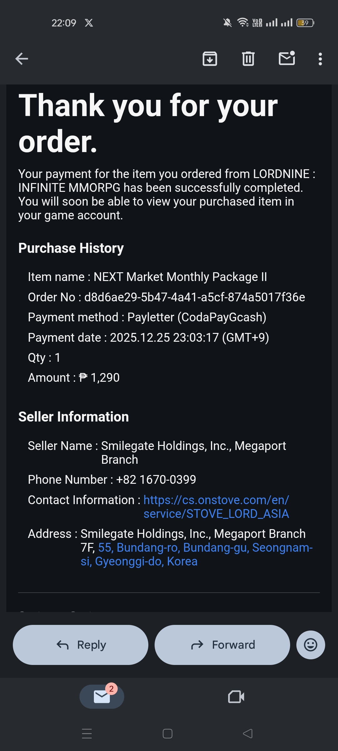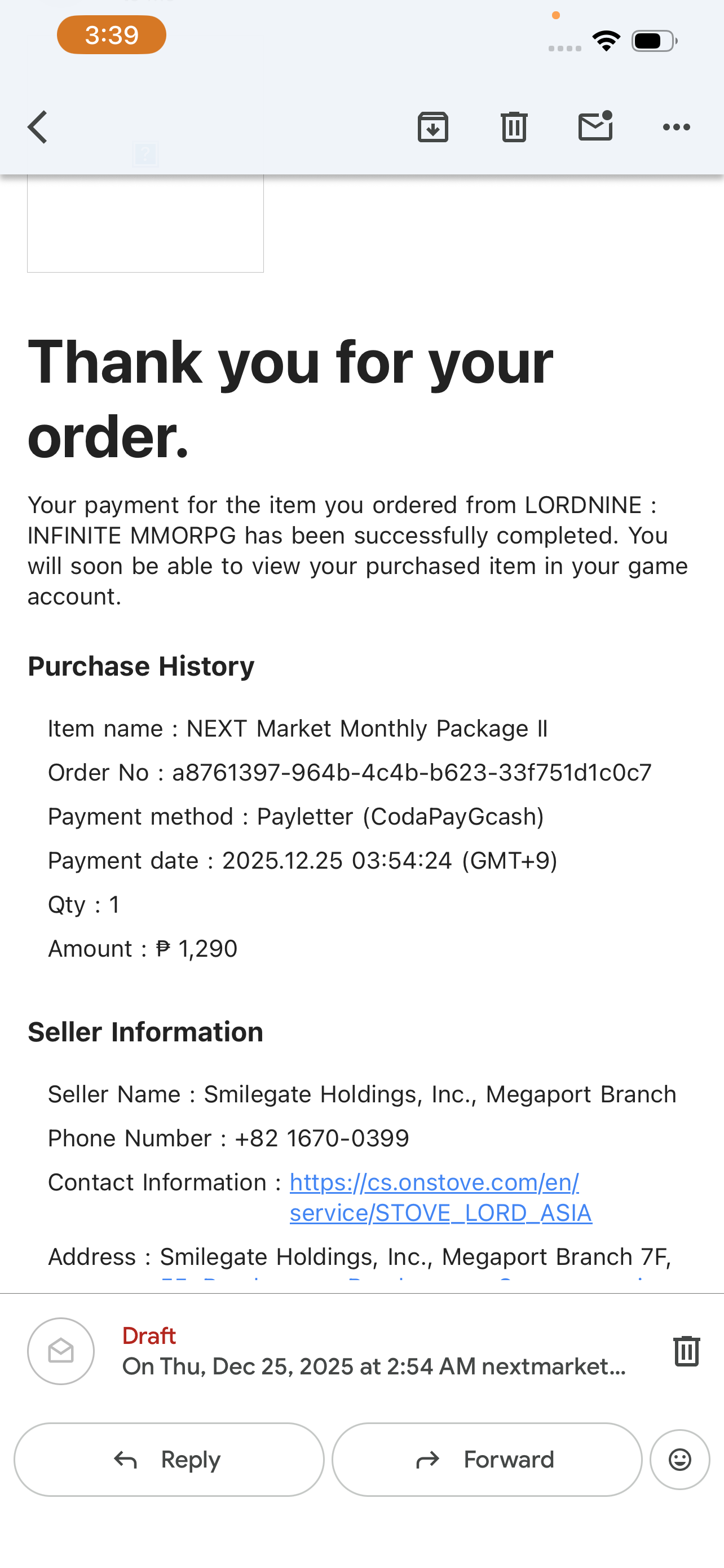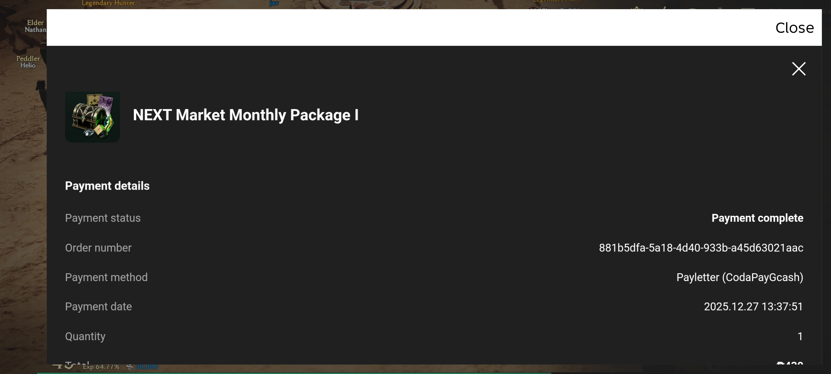 NEXT MARKET ISSUE - PACKAGE NOT SENT TO INGAME EMAIL [17]