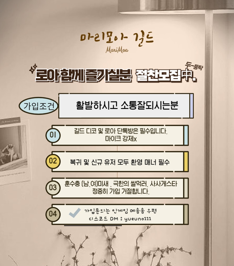 가입문의 인게임 : 메송송 (부재중 우편가능) 가입문의 디코: yueun0111
