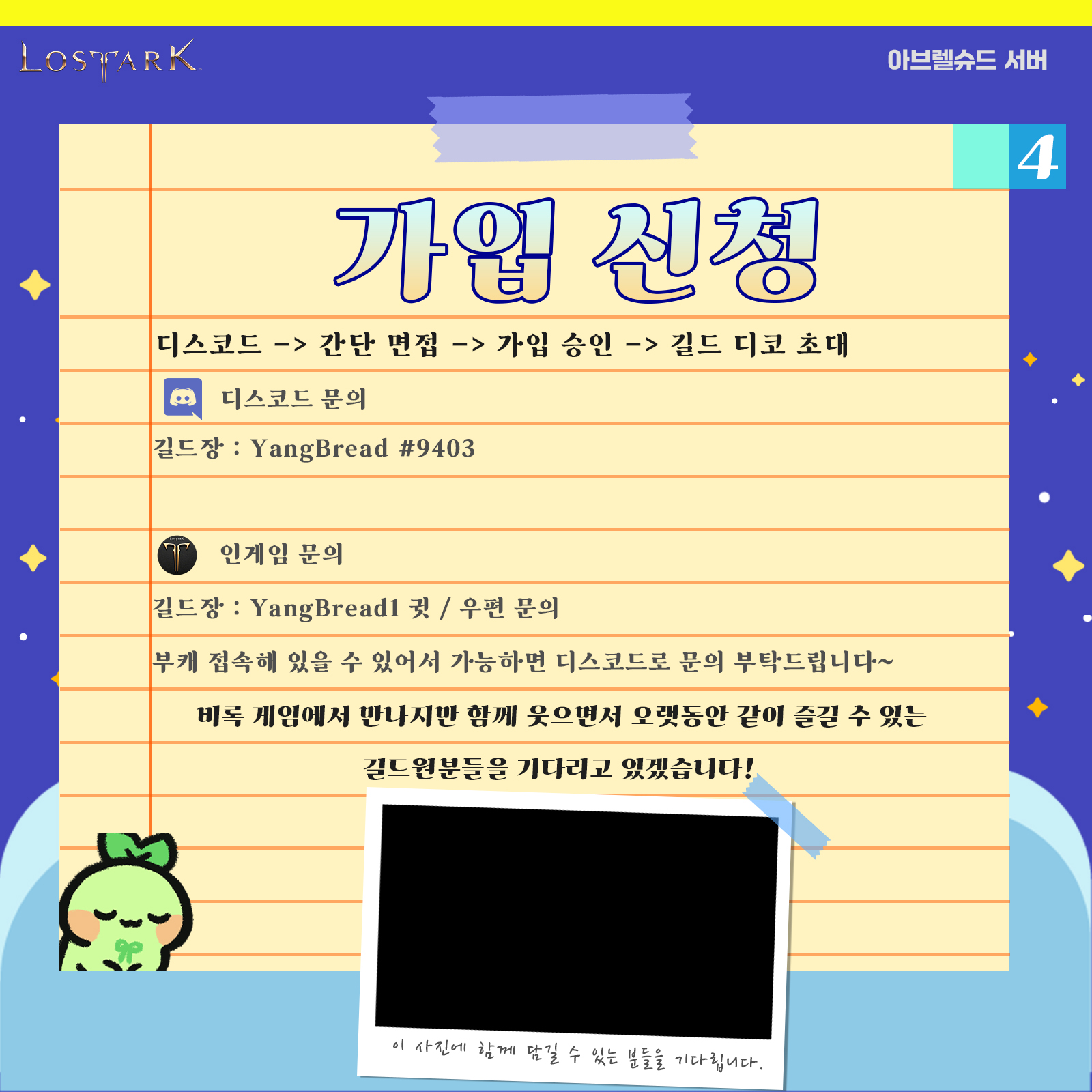 인게임 : "YangBread1" 귓 / 미접속일 경우 우편으로 문의