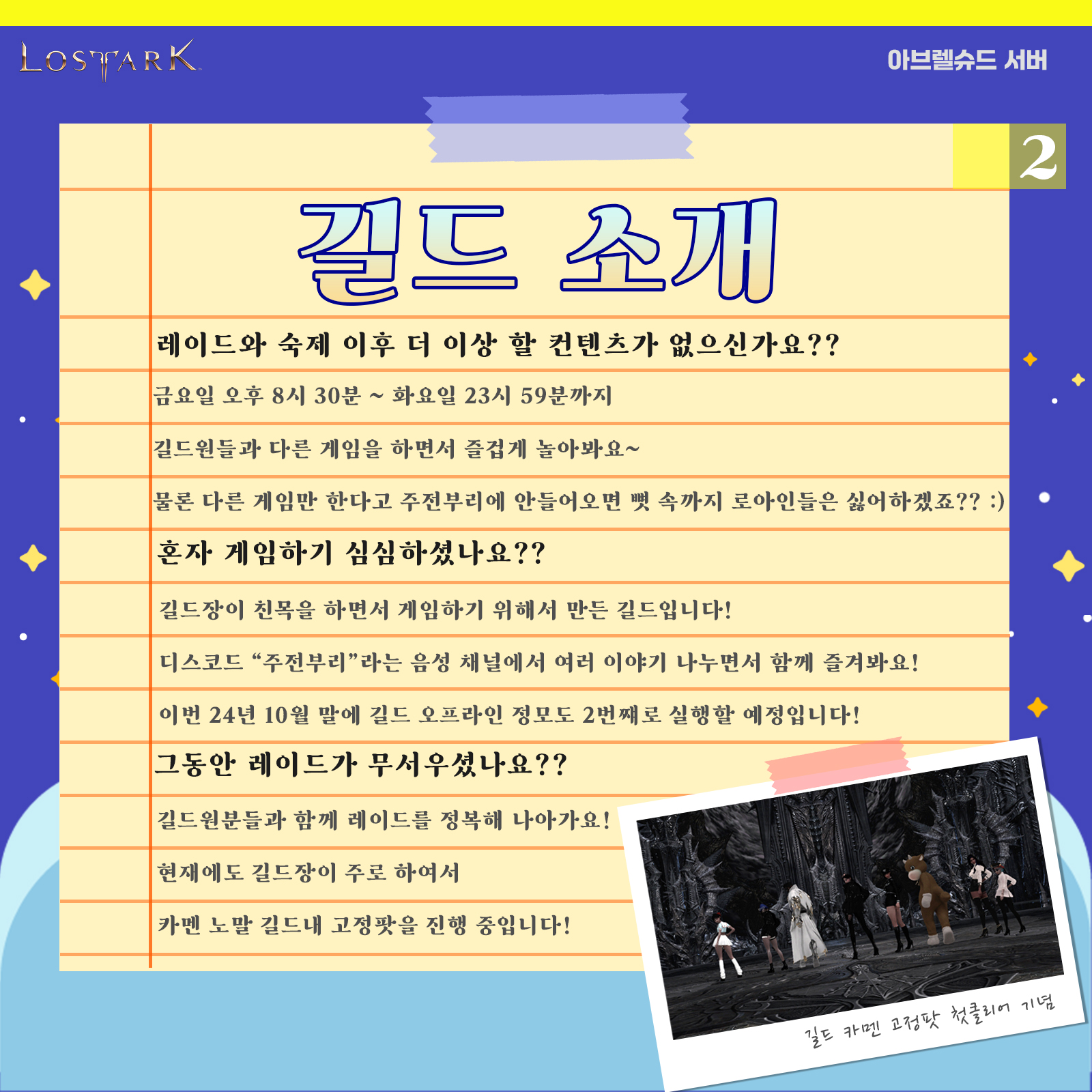 🎮 길드원분들과 즐겁게 레이드를 공략해보시고 싶으신 분