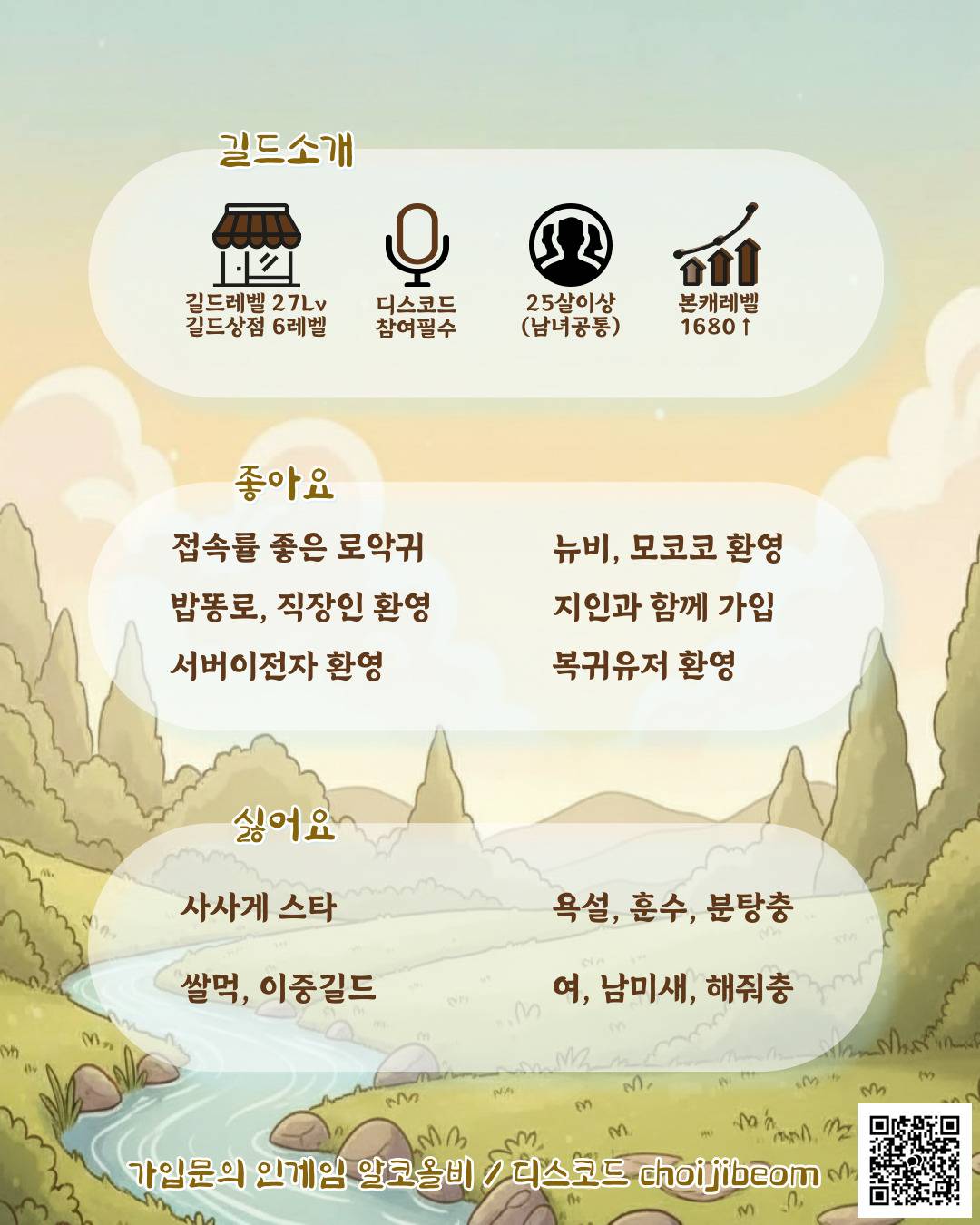 2)25세이상 로악귀, 직장인, 복귀, 서버이전자, 뉴비, 지인, 커플 모두 환영