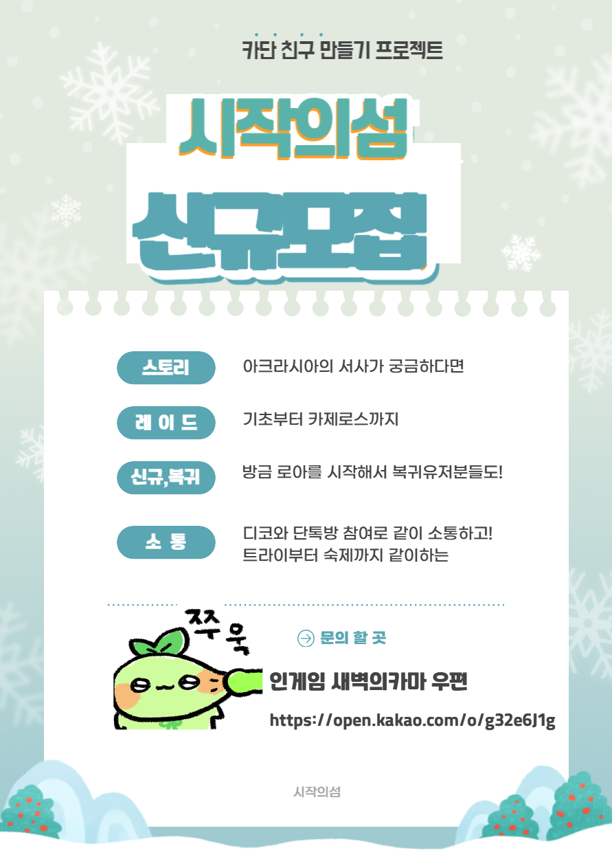 [카단] 카단❤️시작의섬 ❤️ 같이 친하게 지내며 레이드와 트라이를 하실 여러분을 환영합니다!!!