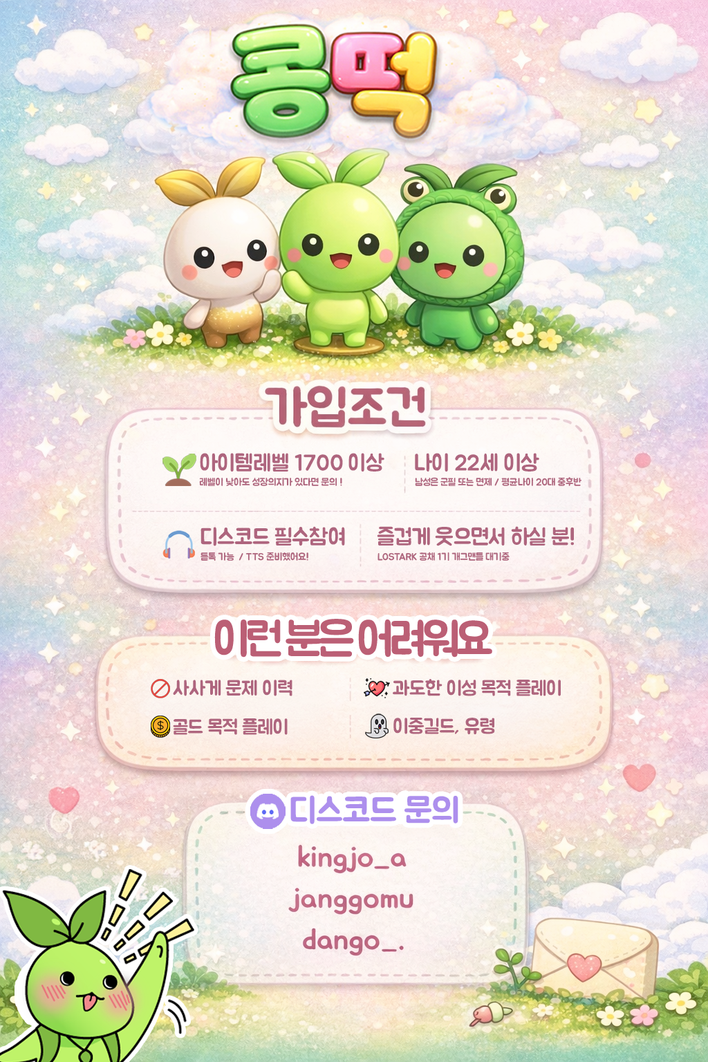 🩷 신생길드🩷 레벨30 상점만렙 [콩떡]에서 신입길드원을 모집합니다!!