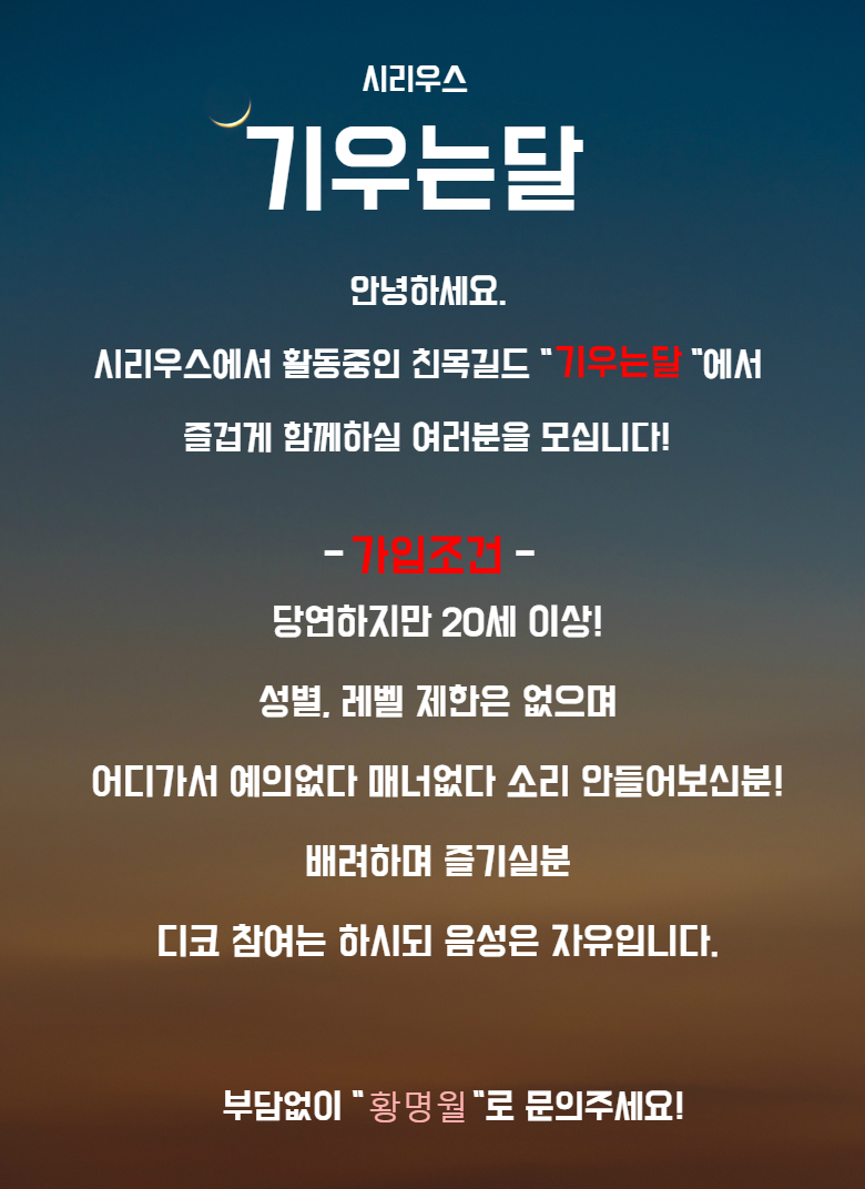 글상세길드 "기우는달"에서 함께하실분들을 모십니다 황명월 2019-02-06 11:50 2019-02-06 20:50 (+09:00) view count 95 MY홈 보기 작성글 보기 신고하기 공유하기 댓글 0 alarm 알림이 해제되었습니다. 최신순 최신순 등록순 추천순 댓글을 입력하려면 로그인 해주세요. 확인 취소 확인