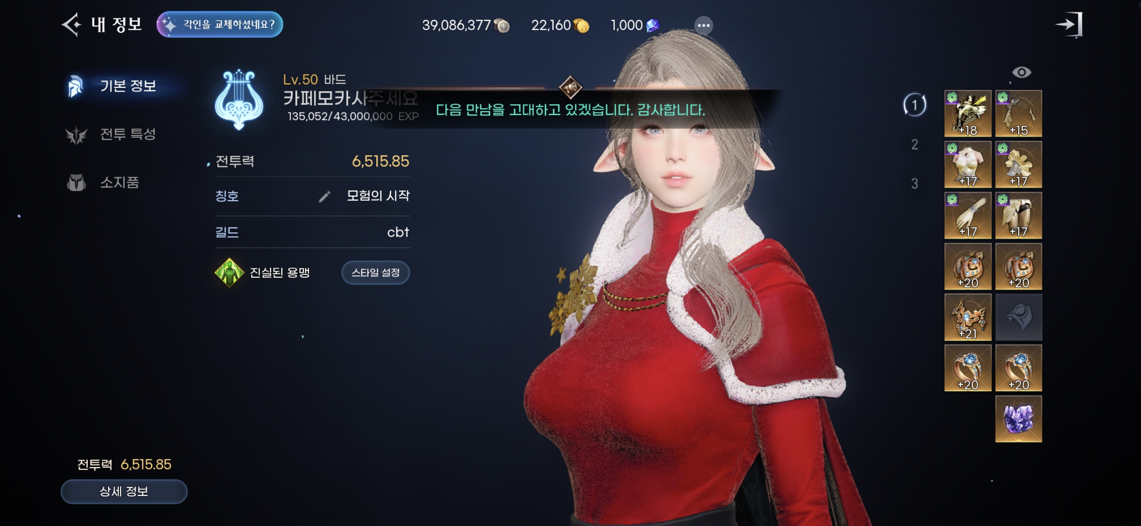 내 캐릭터 자랑하기의 글 목록 CBT CutyRyan MY홈 보기 작성글 보기 작성 시간 2025-11-17 +2 CBT 인증! 2025-11-17 2025-11-17 05:39 CBT 밥값은할게요 MY홈 보기 작성글 보기 작성 시간 2025-11-17 CBT 인증 내캐릭자랑🤩🤩 2025-11-17 2025-11-17 04:57 CBT 카페모카사주세요 MY홈 보기 작성글 보기 작성 시간 2025-11-17 +1 바드가 세상을 구원하리라 2025-11-17 2025-11-17 04:27 CBT 파파이코 MY홈 보기 작성글 보기 작성 시간 2025-11-17 +3 CBT 참여 후기 2025-11-17 2025-11-17 01:12 CBT STOVE161517166385000 MY홈 보기 작성글 보기 작성 시간 2025-11-17 오픈까지 어찌 기다려..... 2025-11-17 2025-11-17 00:47