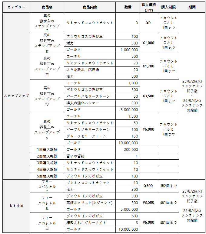 # ピックアップ期間:25/8/12(火) メンテナンス終了後~25/9/23(火) メンテナンス開始前