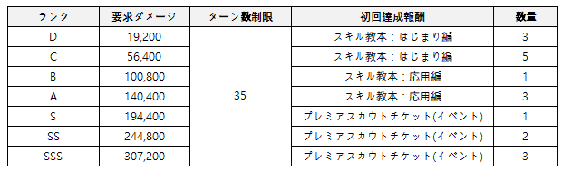 - 達成したダメージ量に応じてランクが与えられ、初回達成報酬を獲得します。(1日1回チャレンジ可能)