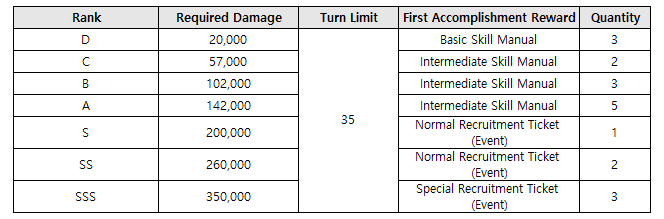 - You can acquire rewards relative to the rank you've acquired based on the damage dealt. (Available once per day)