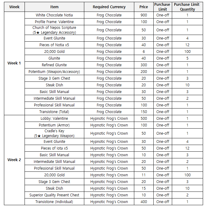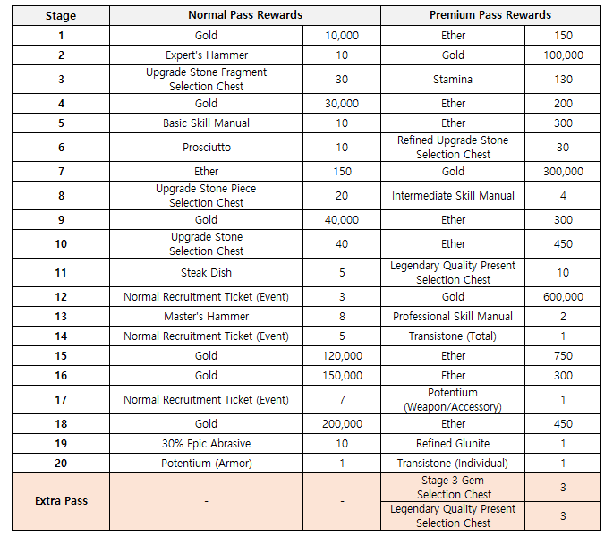 ㄴ The composition of all rewards and items that previously included Clear Tickets will be changed.