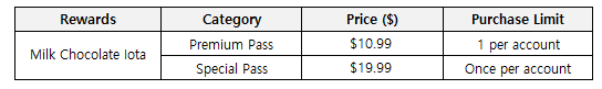 ※ If you own the 'Milk Chocolate Iota' costume, you can only purchase the Premium Pass,