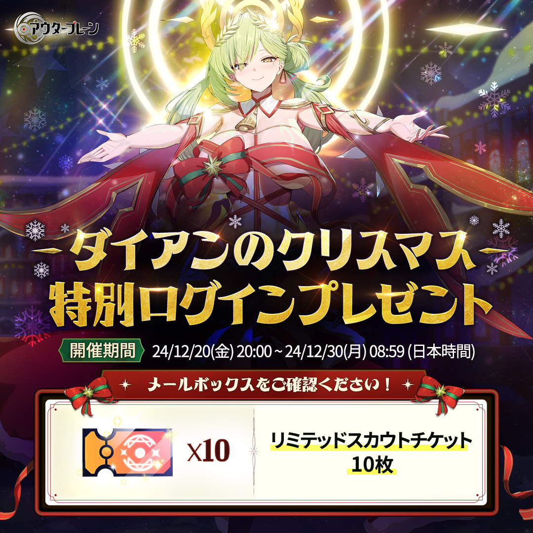 期間内に『アウタープレーン』へログインして、ぜひダイアンからのプレゼントを受け取ってください♥️