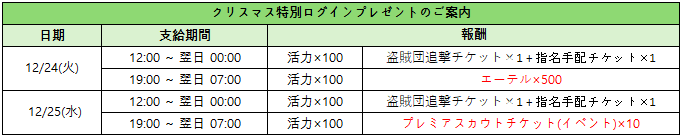 ✨12月24日と12月25日の二日間、特別ログインプレゼントをご用意しました!