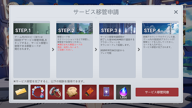 3. サービス移管ページがオープンします。