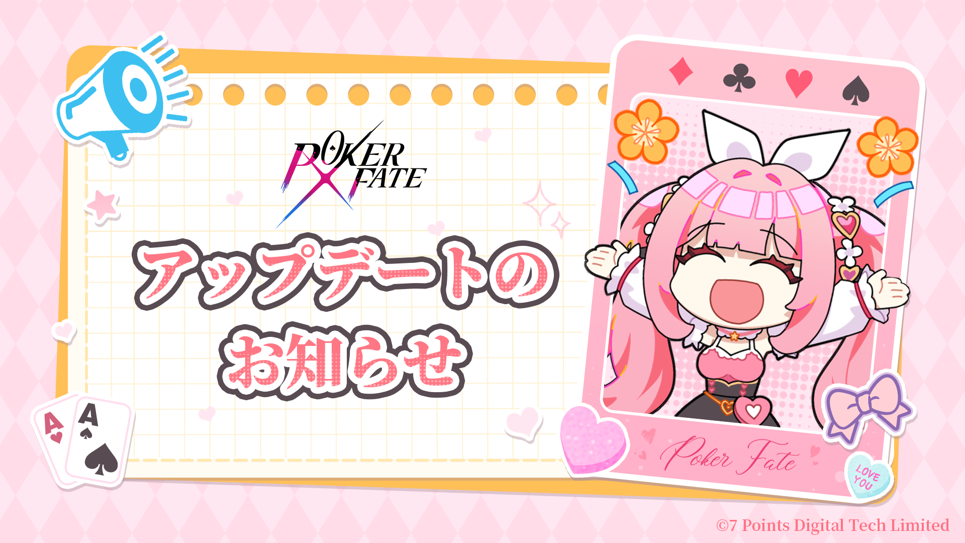 「Poker Fate」のバージョンアップが完了しました。ぜひゲーム内で新コンテンツをお楽しみください。!