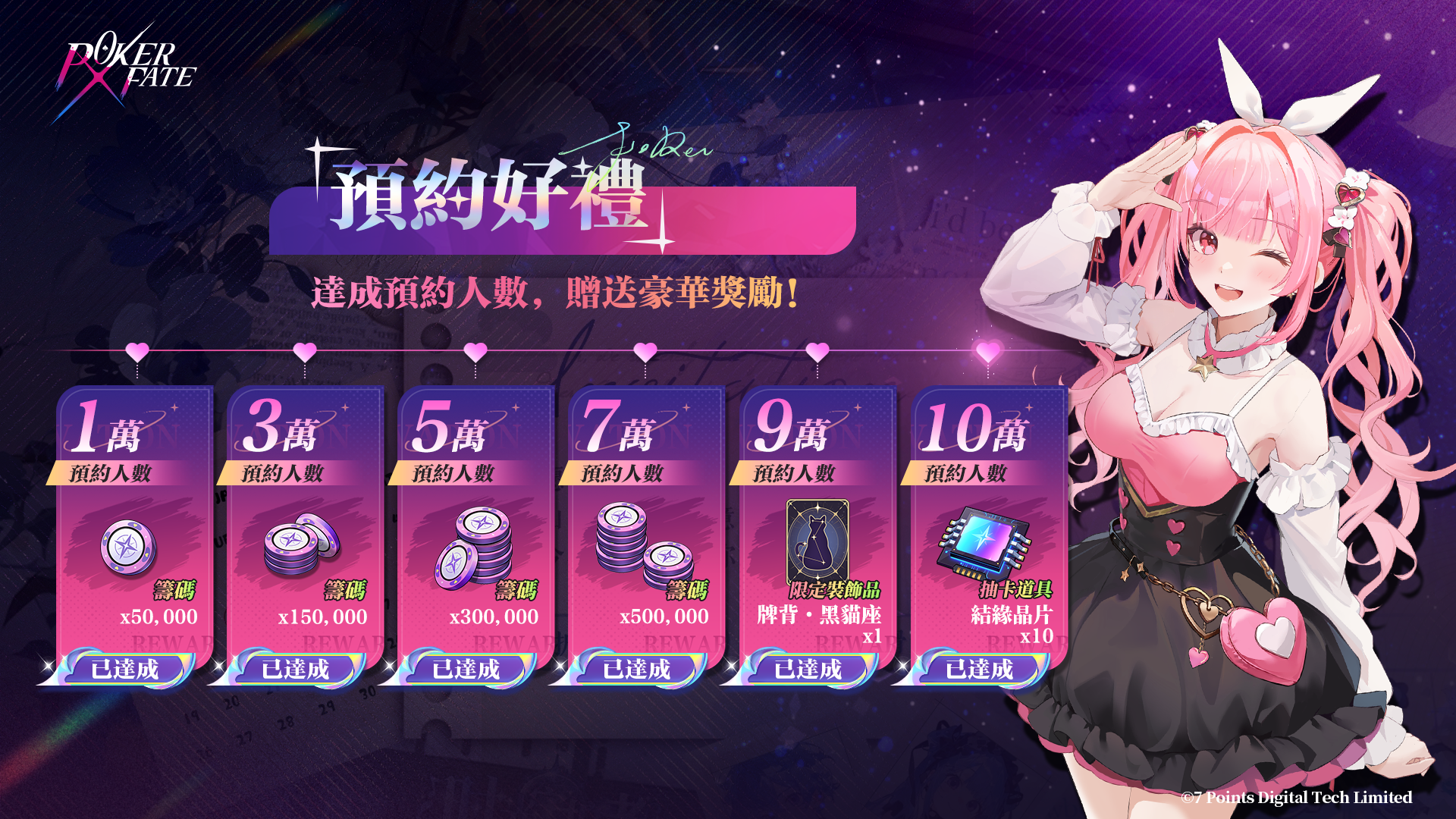 隨著所有活動目標達成,遊戲正式上線時,我們將贈送全體玩家招募道具【結緣晶片×10】作為特別獎勵!🎁