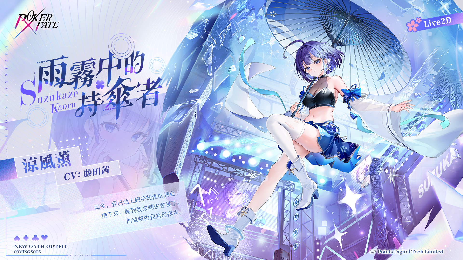 글상세公告 新角色誓約服飾介紹 OFFICIAL 포커페이트PokerFate 2026-04-05 03:00 2026-04-05 12:00 (+09:00) view count 4 查看我的頁面 查看發布貼文 分享 ◼️涼風薰CV:#藤田茜# 如今,我已站上超乎想像的舞台。接下來,輪到我來輔佐會長了。前路將由我為您撐傘。▼遊戲下載請點擊▼https://www.pokerfate.com#PokerFate #Poker #德州撲克 留言 0 alarm 已解除通知。 依最新順序 依最新順序 依登錄順序 依推薦順序 如果要留言 登入 請。 確認 取消 確認