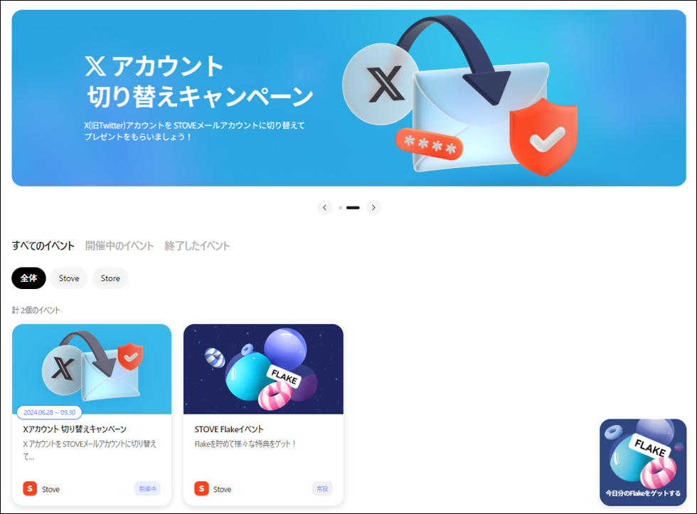- STOVE内で開催されるイベントをまとめて確認することができます。