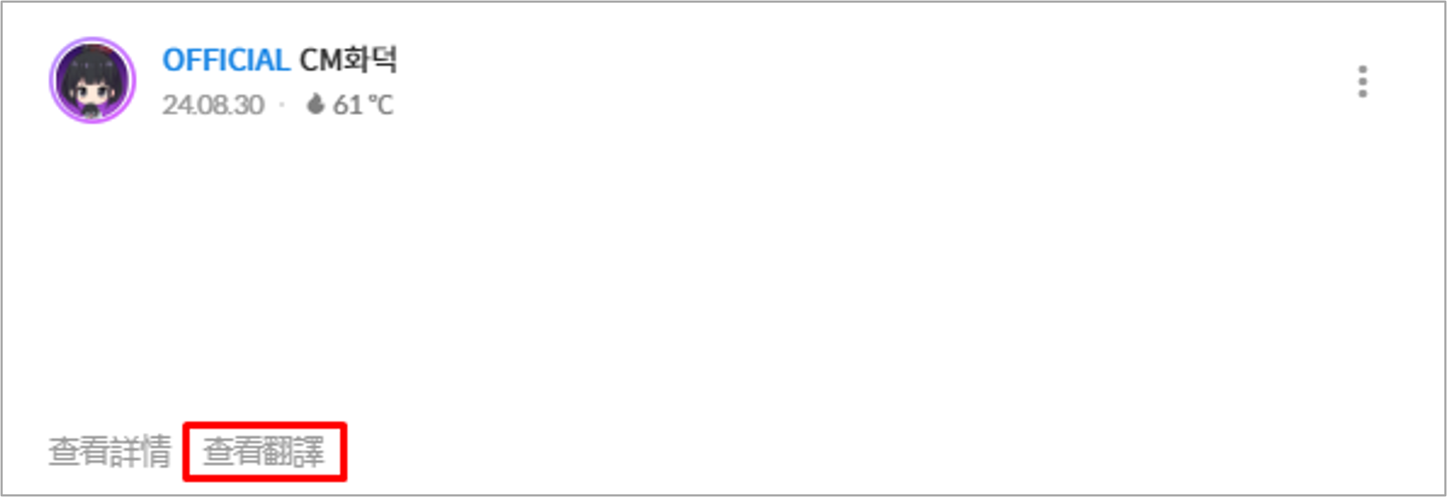 點擊按鈕時,即可根據STOVE首頁上設定的語言來使用翻譯功能。