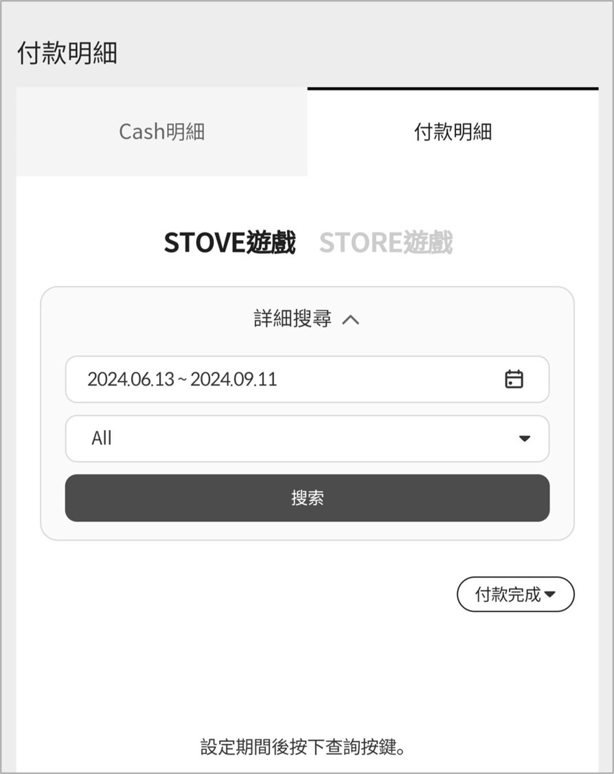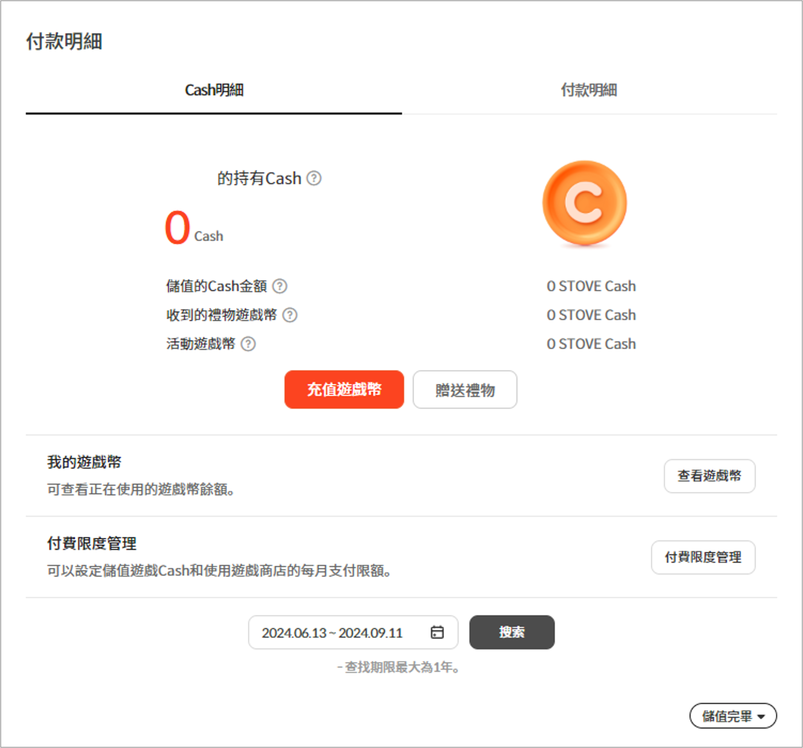 4. 可在行動版網頁環境中查看STOVE Cash紀錄和付款明細。