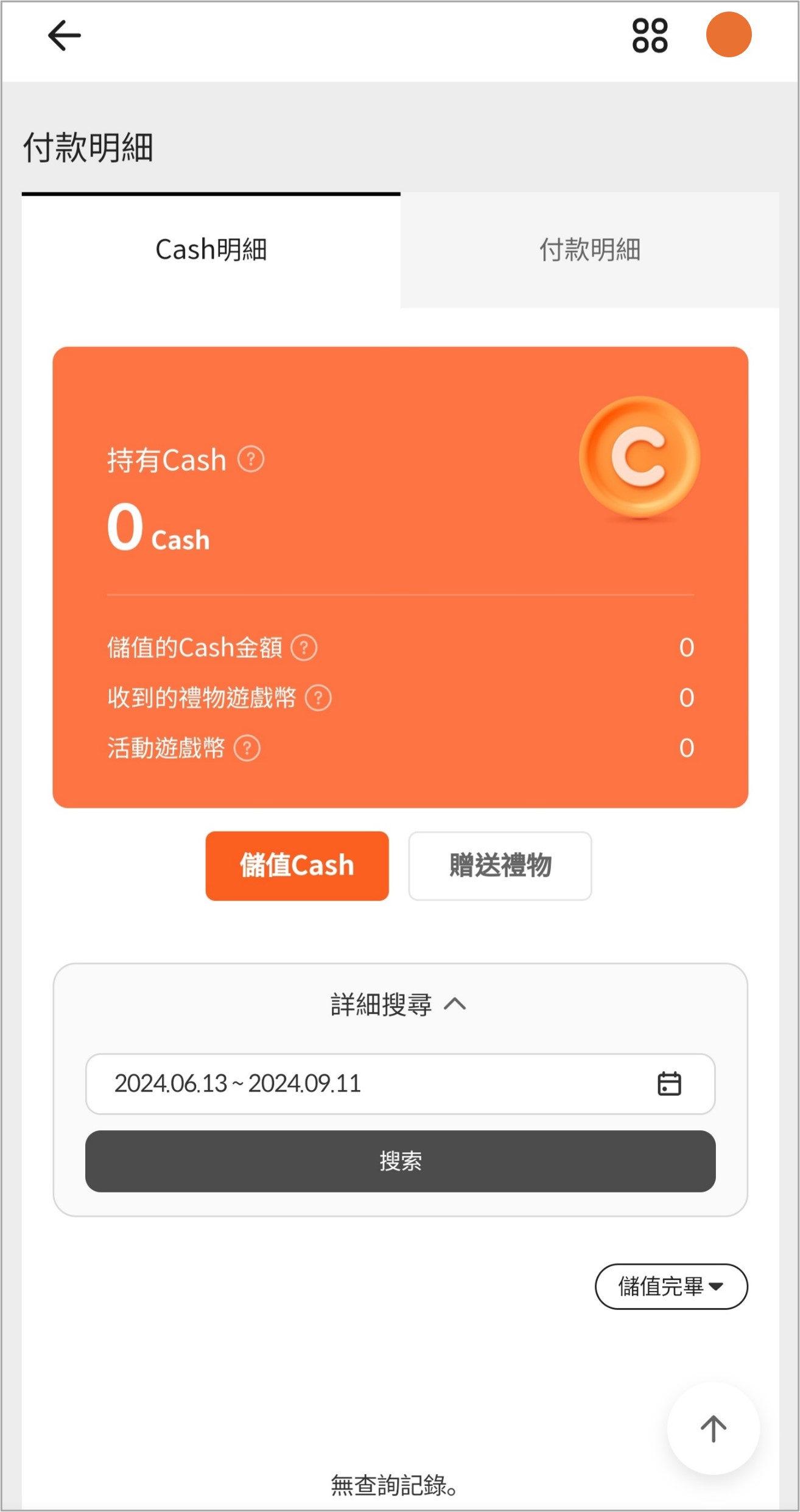 - 可以透過右上方的個人資料>Cash>Cash紀錄選單來查看。