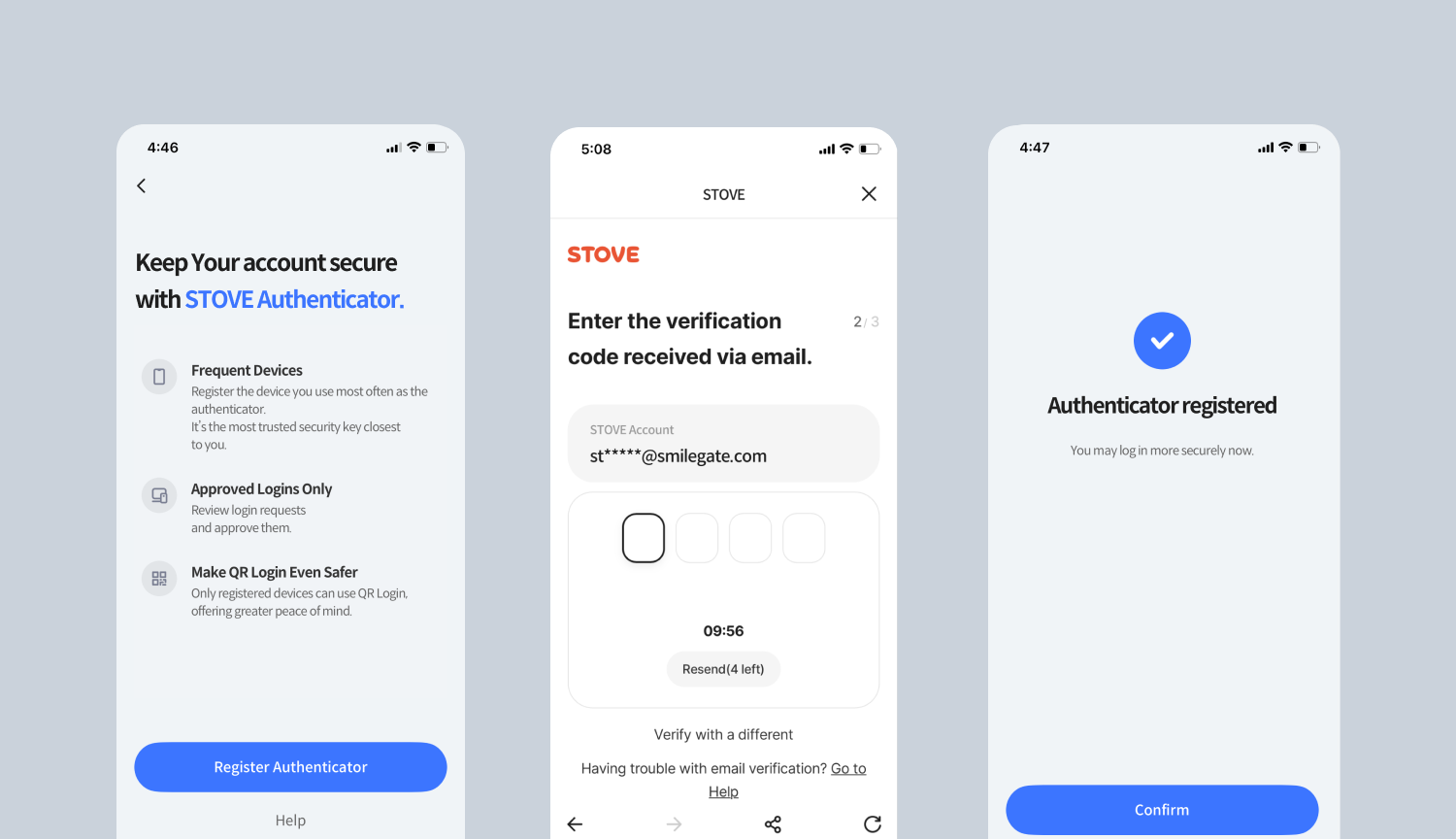 2.變得更加一目了然的STOVE行動版驗證器登錄畫面