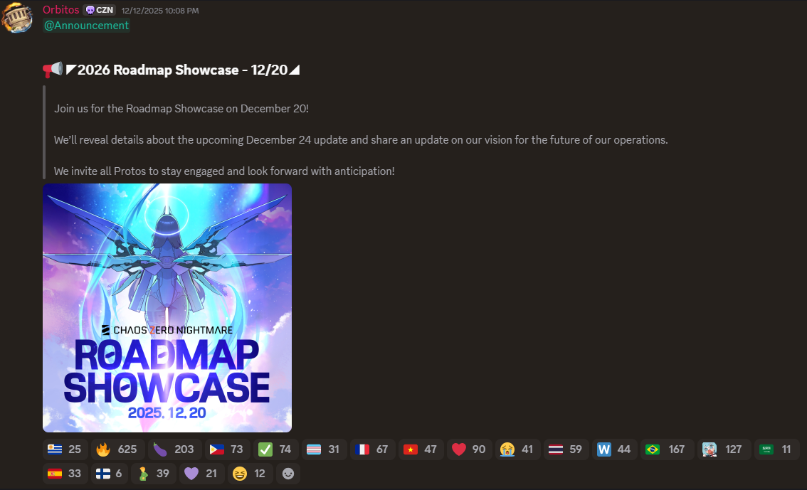 글상세🎠 Free Talk Chaos Zero Nightmare Roadmap Showcase OFFICIAL CM Yuna 16/12/2025 09:13 AM 16/12/2025 06:13 PM (+09:00) view count 42 View MY HOME View Posts Share Just come across this announcement on Chaos Zero Nightmare Discord server Reply 0 alarm Notification has been disabled. Newest Newest By registration By recommendation To enter a comment Log In Please Confirm Cancel Confirm
