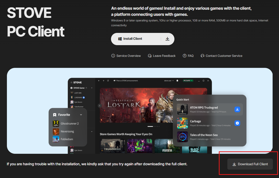 Step 3: Visit the official STOVE website to download and reinstall the new client.