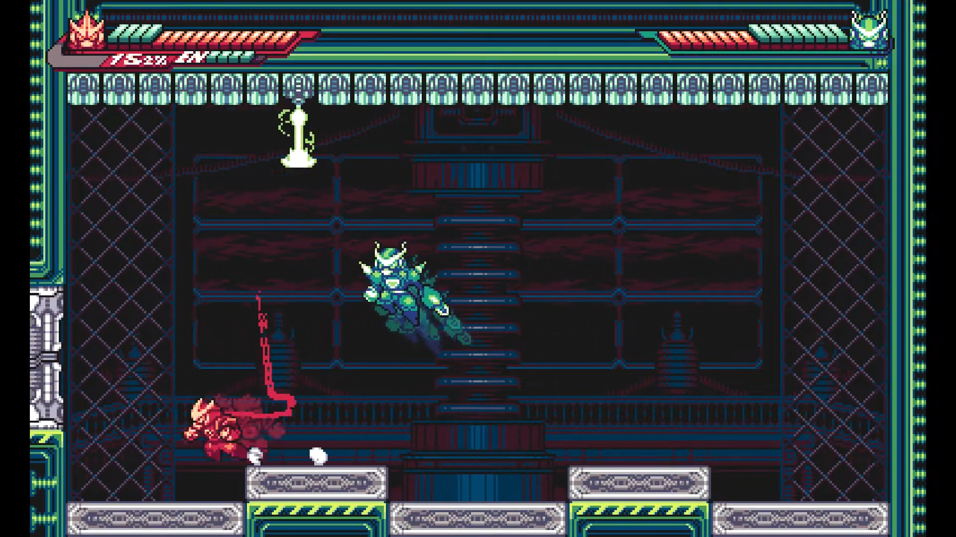 In terms of genre conventions, the game follows a classic structure-inear stages, boss encounters, upgrades, and exploration—but executes it with polish and confidence. While there are comparable games in the same space, Gravity Circuit differentiates itself through its grappling hook mechanics and emphasis on fluid, aggressive movement.