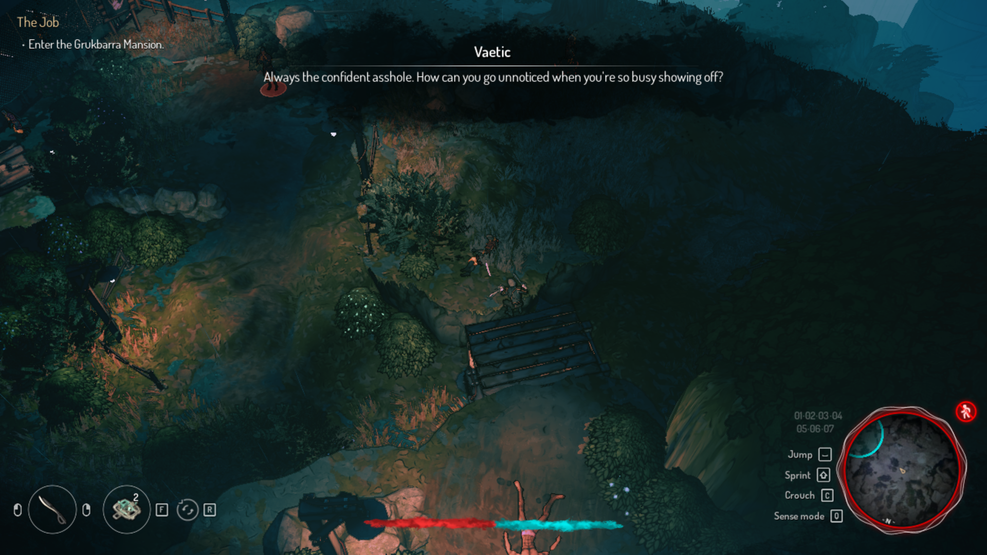 Taking on the role of Teriel, our smooth master thief, is a blast! The movement flows nicely, and the camera works really well with all those vertical shifts. Whether you’re sneaking through bushes or hanging from ledges, the tension keeps you on your toes.