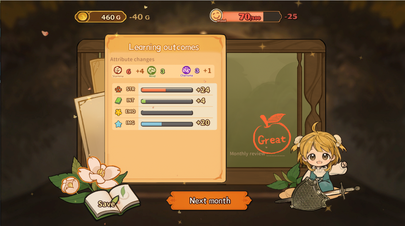 There is lesser penalty compared to Princess Maker, though, for doing side activities (as far as I can tell), and I love the artstyle.