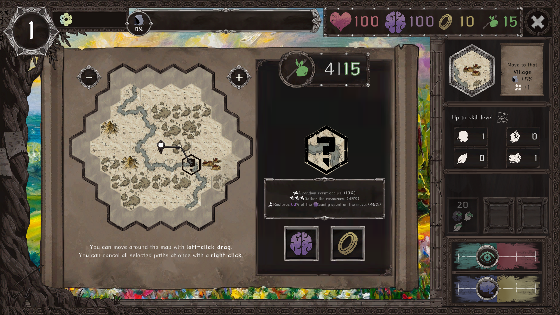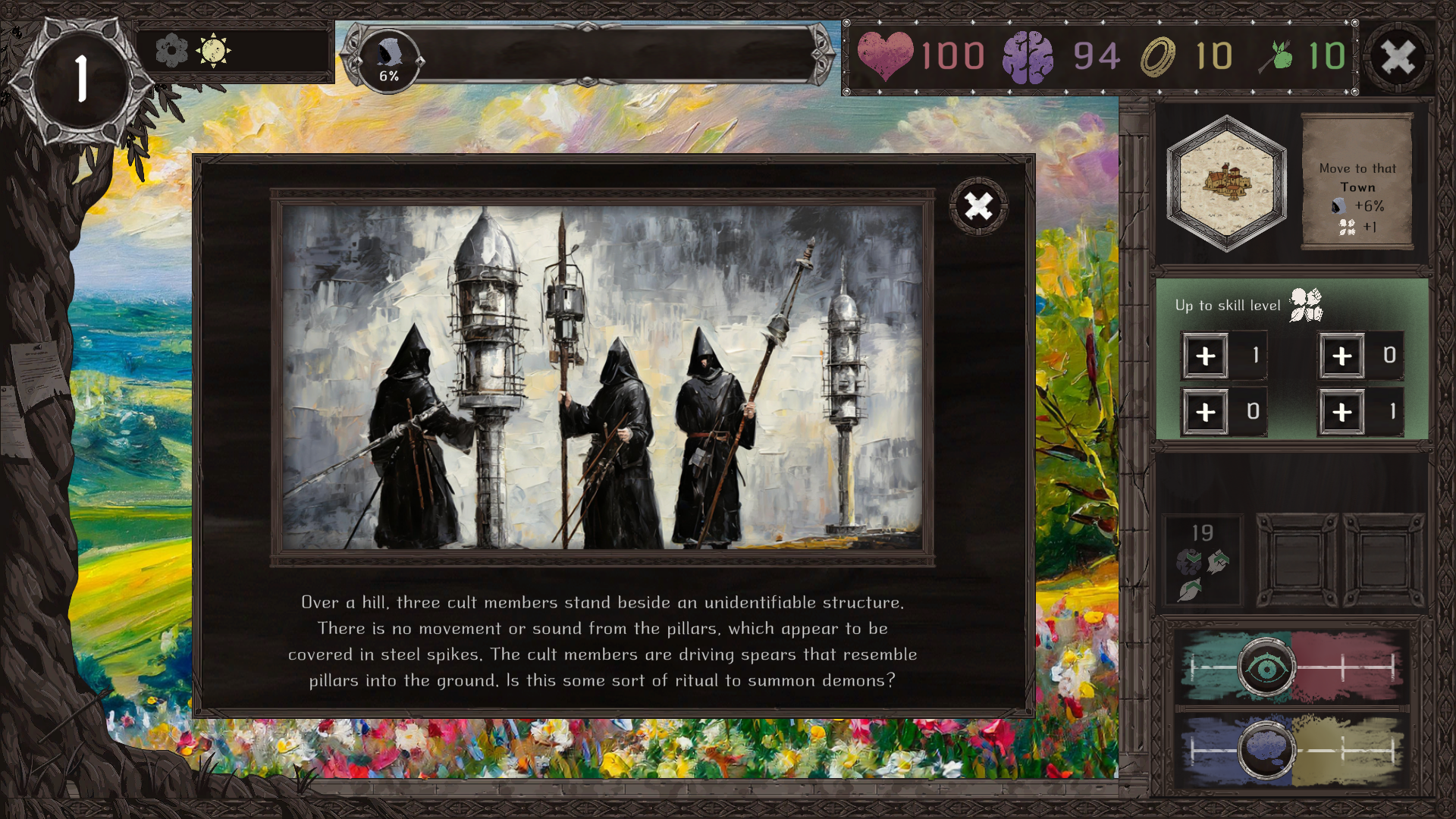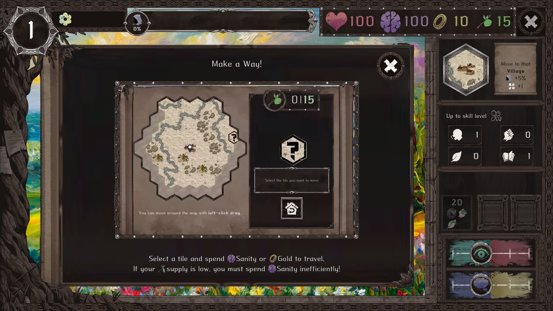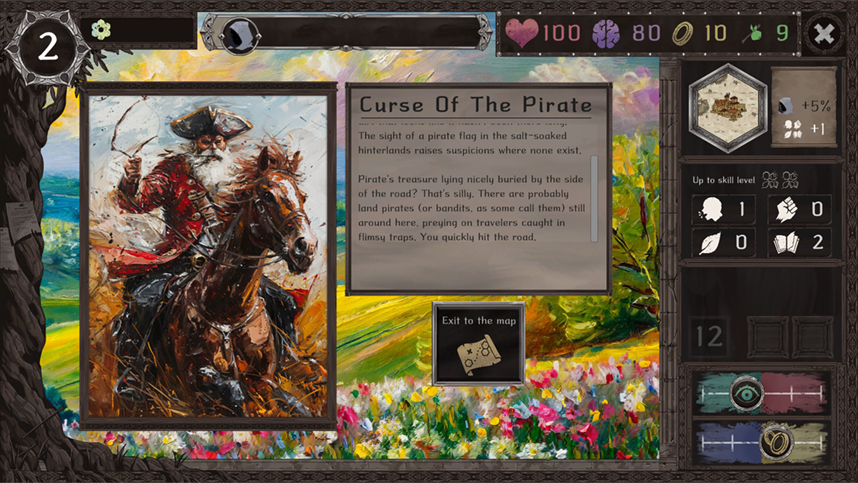 The gameplay revolves around three main things: Health, Sanity, and Gold. Each action you take costs something, which can make the game feel a bit slow and repetitive, like managing a spreadsheet instead of going on an adventure. At times, I found myself getting a little bored. But just when I thought it was getting dull, the game would throw a tough decision my way, reminding me that every choice has its consequences.