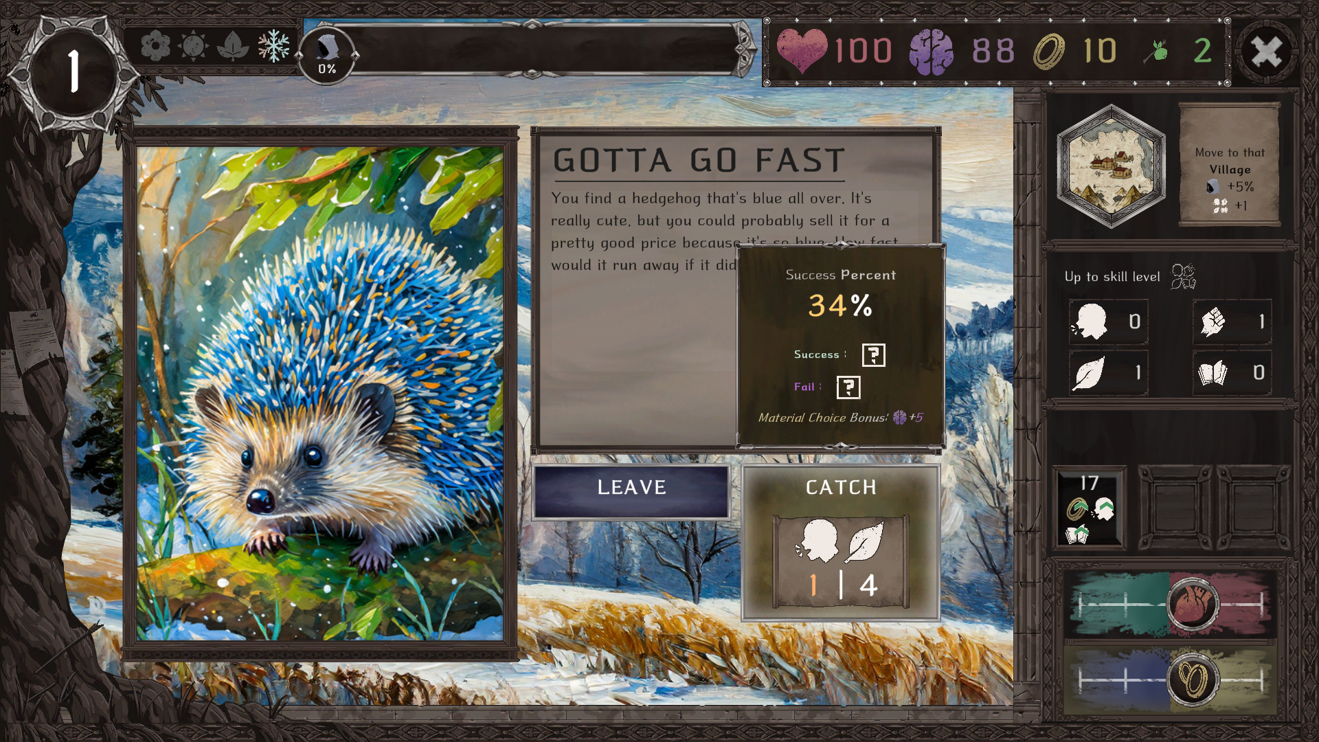 The story unfolds through lots of random events, making you feel like a traveler in a constantly changing world. Itโs not about reaching a destination but about what you experience along the way. Some moments are surprisingly dark, like stumbling onto a creepy cult, while others, like trying to catch a cute blue hedgehog for gold, add a fun twist.