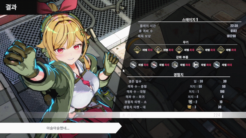 ヒロインのおかげで目の保養になりましたが、シューティングとしても普通に楽しい出来でした。一方で、選択肢の幅が少ない点やHPバーがない(衣装の損耗で判断)などの細かな弱点もあります。それでも価格の1万ウォンには十分見合っていると感じます。