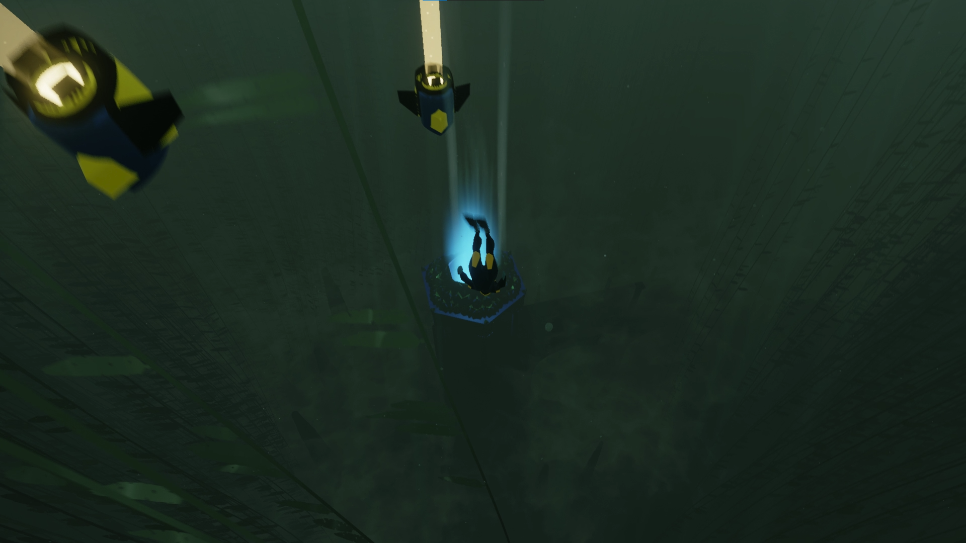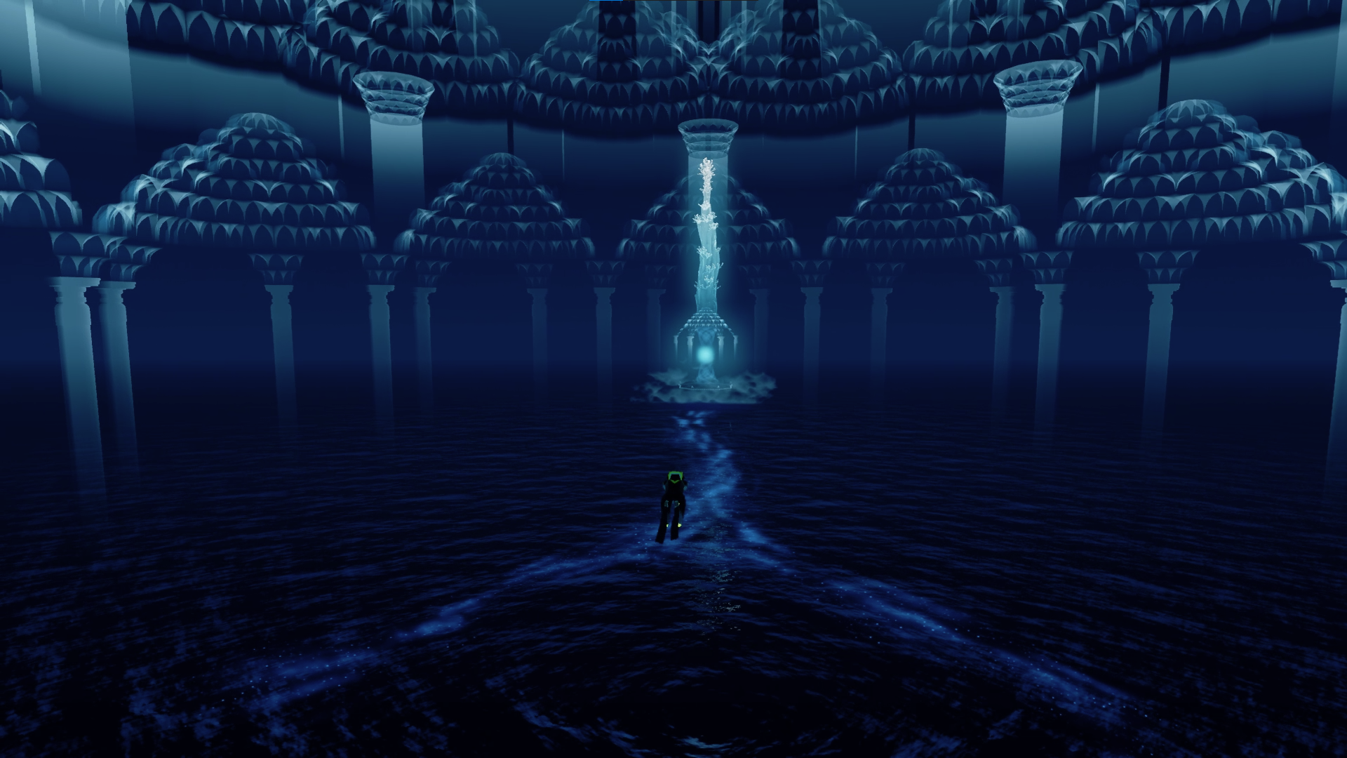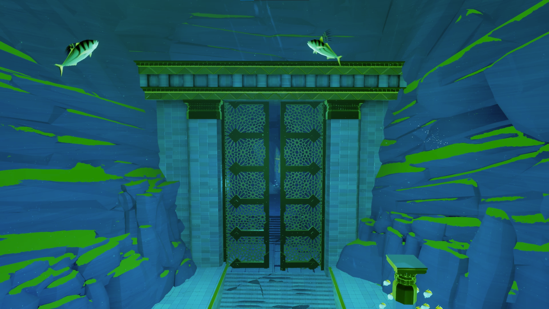 입구처럼 들어왔던 어두운 지역에 있는 신기한 푸른빛은 산호초 탑이었나 봅니다.