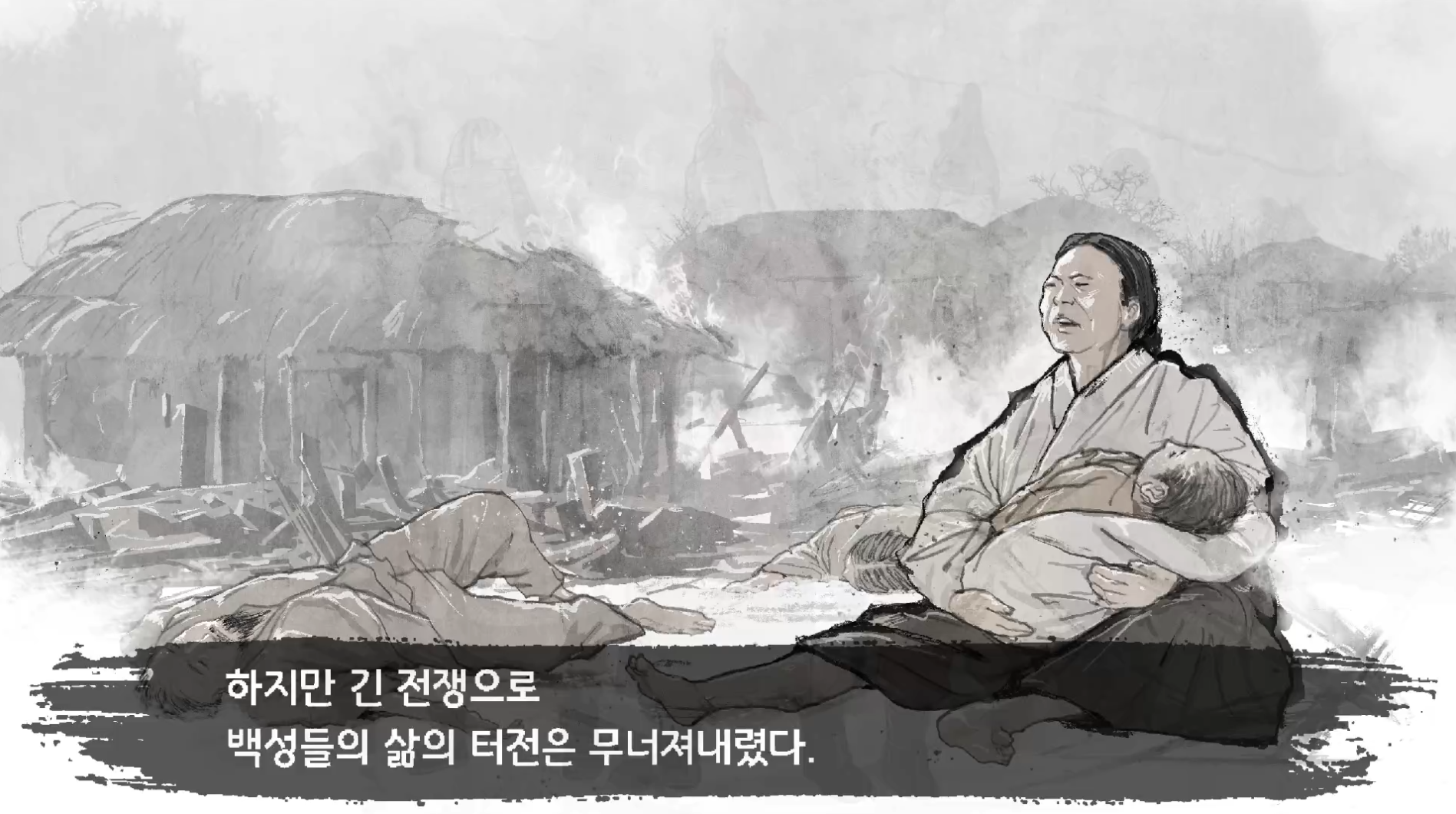 초반 부 컷신에서는 임진왜란으로 인해 혼란스러운 조선의 모습과 함께