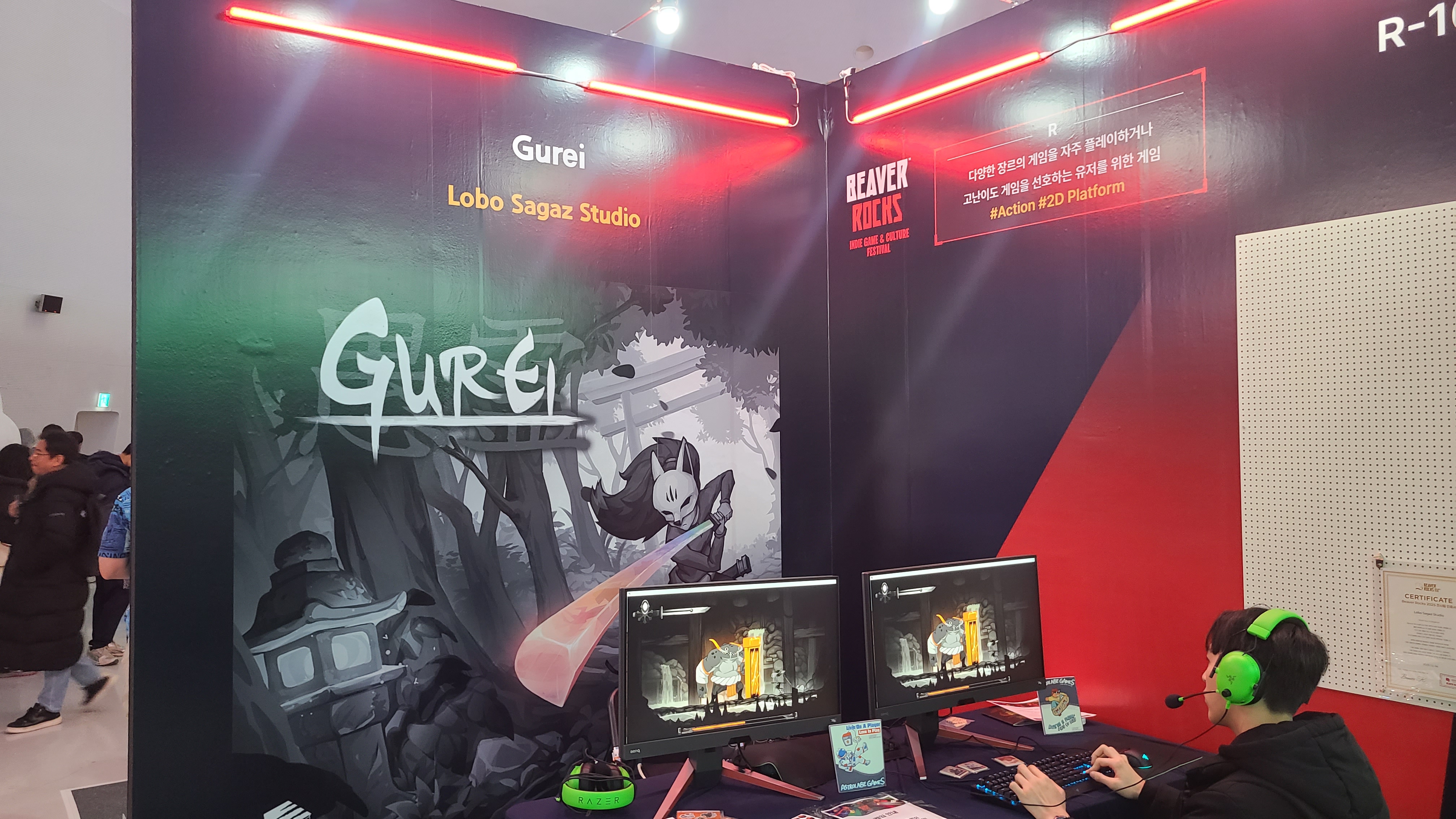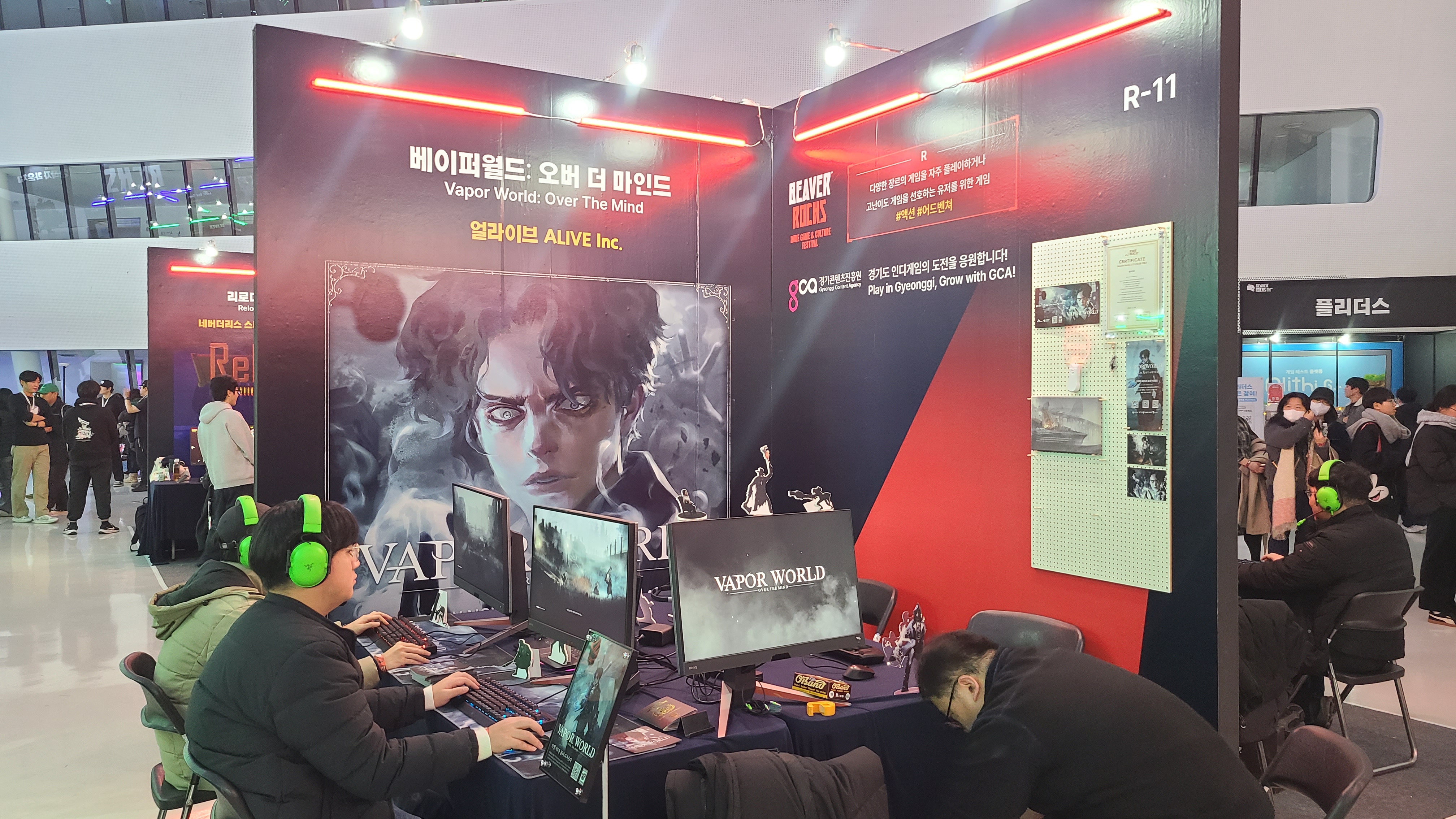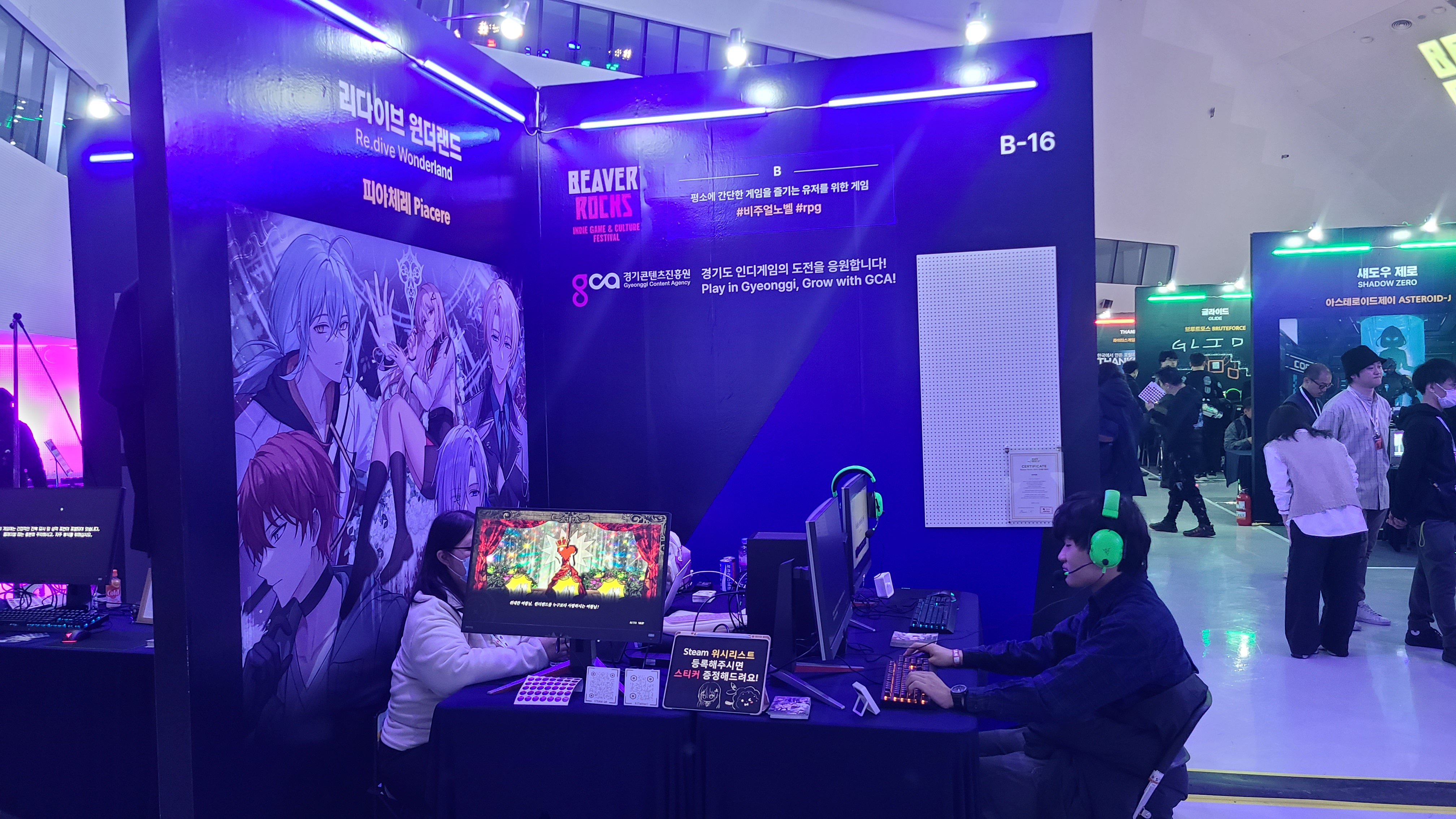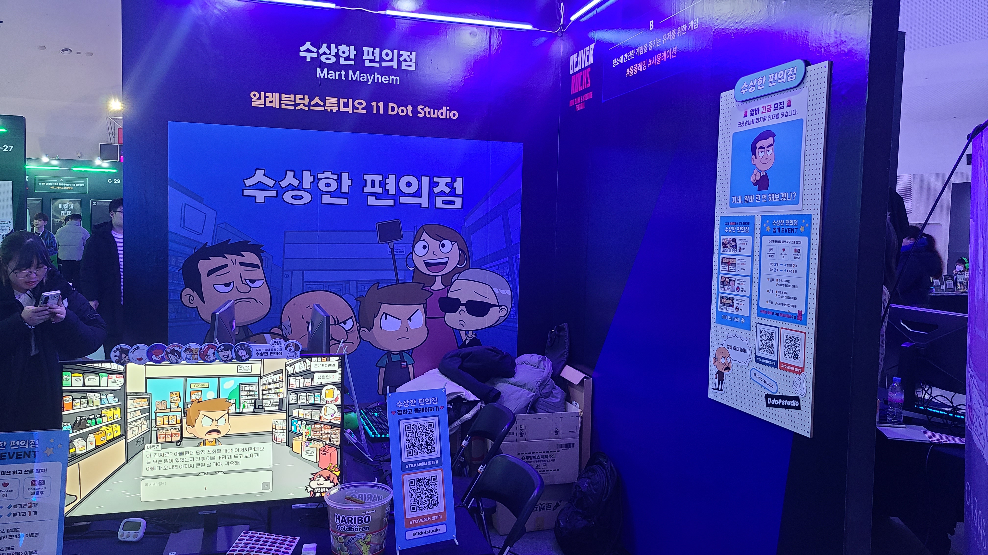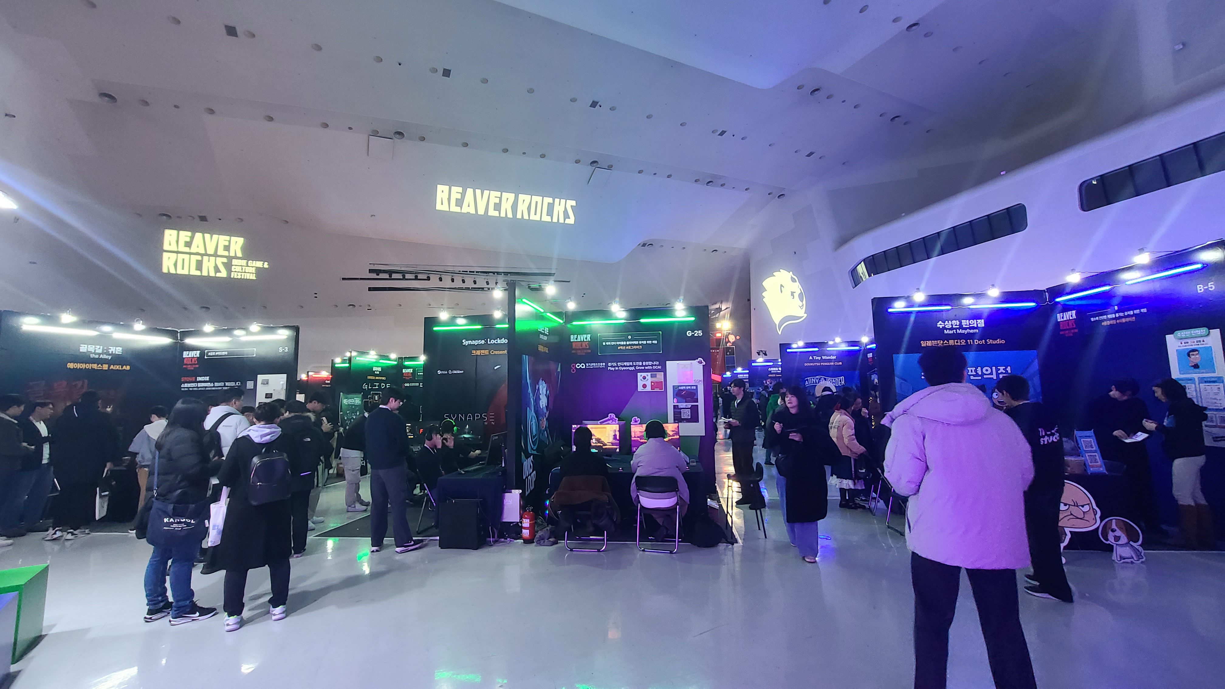 -> 비버롹스는 3구역으로 나뉘어있다고 보면 된다. 지금 까지 보였던 인디게임 전시관, 실험적 게임공간, 네이버 웹툰 콜라보.