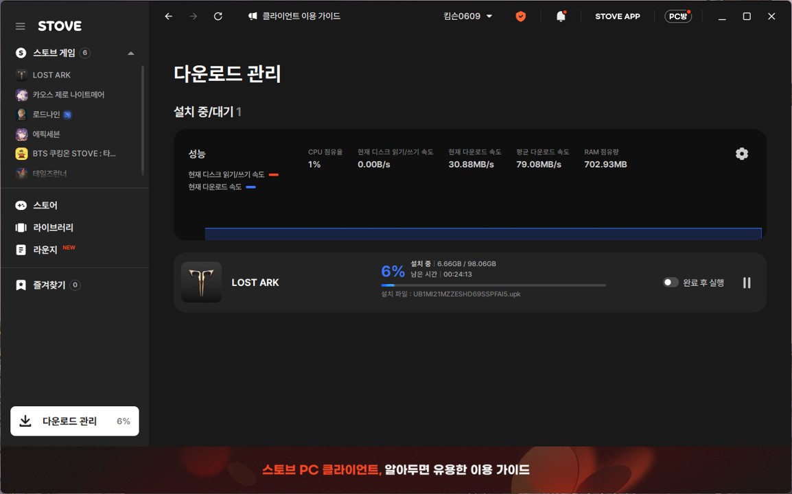 글상세의견 & 제보 로아 설치가 안됩니다. 빠른 확인부탁드립니다. [2] 킴슨0609 2025-12-04 20:29 2025-12-05 05:29 (+09:00) view count 69 MY홈 보기 작성글 보기 신고하기 공유하기 계속 6%에서 밤12시에서 새벽6시까지 계속 멈춰있었으며오전 6시부터 점심 12시까지 멈춰있고점심 12시반부터 오후 6시까지오후6시반부터 밤 12시까지 진행해보았으나,설치가 전~~~~~혀 안됩니다. 계속 6%에서 멈춰있네요~엔씨 아이온2절차 밟기 싫으시면 제대로 하시죠? 댓글 2 alarm 알림이 해제되었습니다. 최신순 최신순 등록순 추천순 댓글을 입력하려면 로그인 해주세요. OFFICIAL STOVE 2025-12-05 05:43 2025-12-05 14:43 (+09:00) MY홈 보기 작성글 보기 @킴슨0609 회원님, 안녕하세요.작성해 주신 내용만으로는 정확한 확인이 어려워, 스토브 공식 커뮤니티에서는 안내가 제한되는 점 양해 부탁드립니다.현재도 동일한 문제가 발생한다면, 번거로우시겠지만 클라이언트 로그 파일을 포함하여 1:1 문의를 남겨주시면 확인 후 성심껏 답변드리겠습니다.아래 URL을 통해 로그 파일을 첨부하시어 문의 접수 부탁드립니다.- 로그 수집기 도움말 URL : https://cs.onstove.com/service/10/help/1811050048안내드린 내용이 회원님께 조금이나마 도움이 되었기를 바랍니다.고맙습니다. 킴슨0609 작성자 2025-12-04 20:30 2025-12-05 05:30 (+09:00) MY홈 보기 작성글 보기 신고하기 스샷 올려달라하셔서 올려드렸습니다개발자들 고생하시는거 알지만 욕먹을짓만 하지 않으셨으면 하네요. 확인 취소 확인