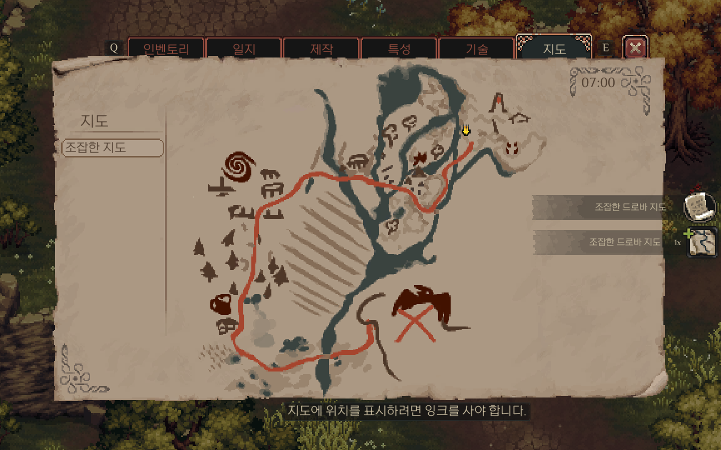 조사를 활용해 맵의 가려진 부분을 확인하거나 숨겨진 요소들을 조사할 수 있습니다.
