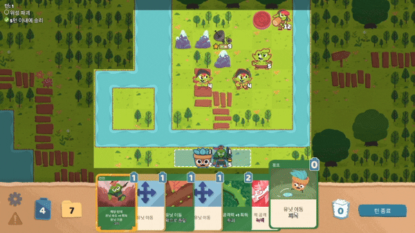 꺼내진 유닛은 손패에 들어온 카드를 통해 공격권을 가지게 하거나 위치를 이동시킬 수 있습니다.