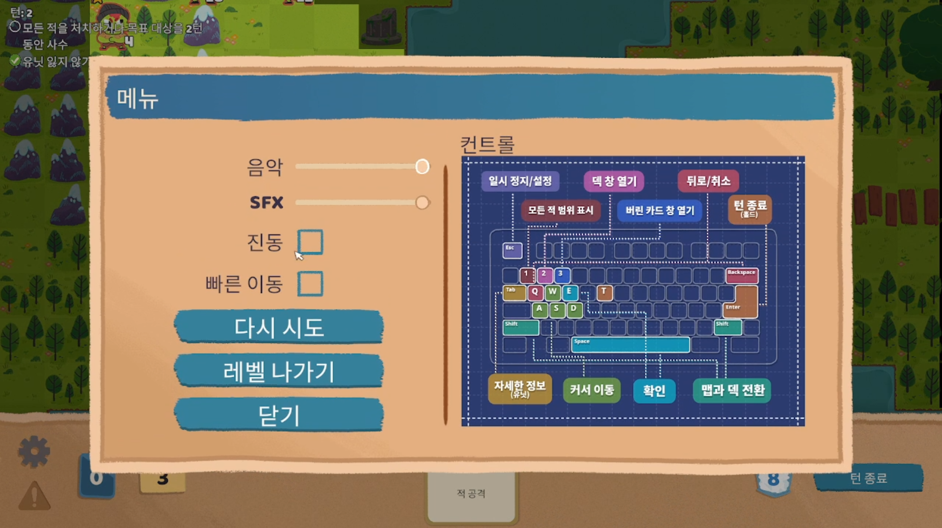 적 턴일 때에는 ESC를 눌러도 게임이 멈추지 않는다는 점이나, 로딩이 느리다는 점,
